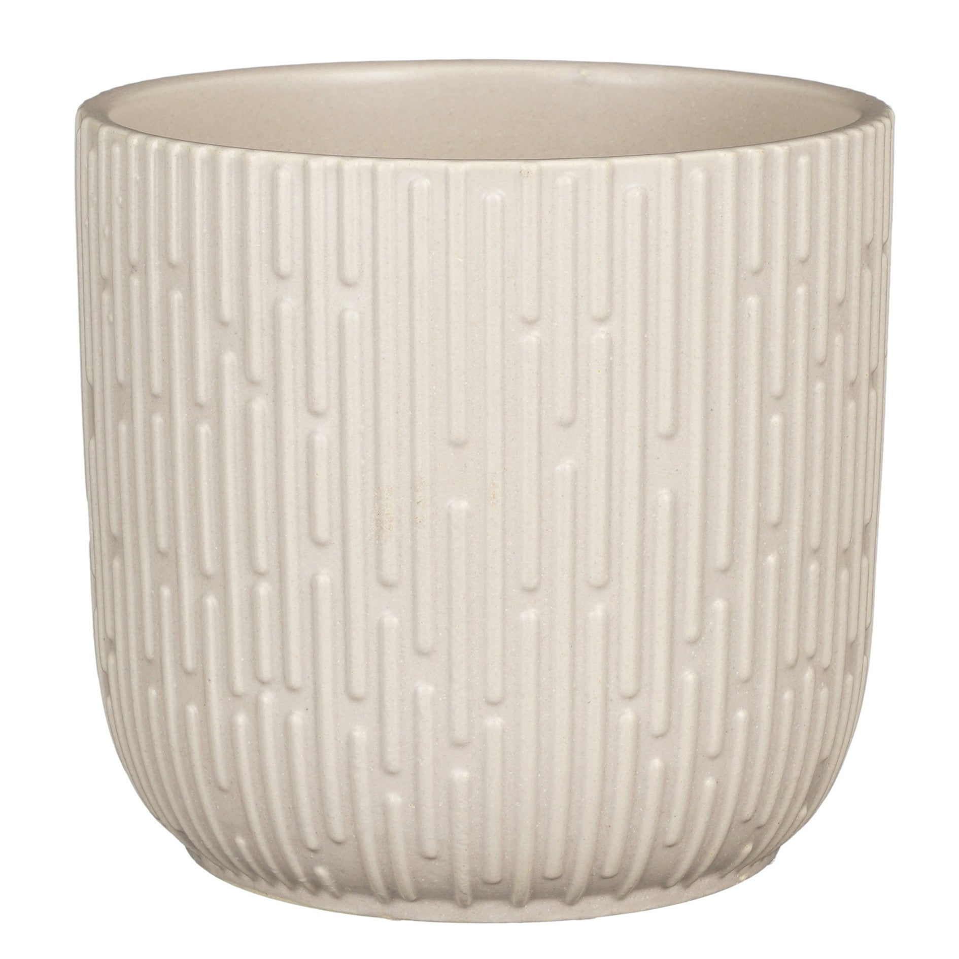 Plantenpot/bloempot van keramiek in de kleur mat wit met een mooi verticale strepen patroon. Diameter 17.5 cm en hoogte 16 cm. Stijlvolle bloempotten voor binnen gebruik. Serie: Sara. De stijlvolle pot met het prachtige patroon aan de buitenzijde is met de hand gemaakt in Portugal. Derhalve is geen pot exact hetzelfde en hebben de bloempotten een echt karakter. Tip: zet een schotel onder de pot om eventueel lekken tegen te gaan. Potten van steen zijn niet 100% waterdicht.