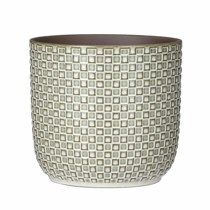 Plantenpot/bloempot van keramiek in de kleur wit met een mooi patroon. Deze wit keramieken bloempot van Mica Decorations is een echte blikvanger. Het stijlvolle patroon geeft ‘m een speelse, maar chique uitstraling, waardoor hij in elk interieur tot zijn recht komt. Of je ‘m nu vult met een groene kamerplant of een kleurrijke bloem, deze pot laat je plant stralen. Zet ‘m op tafel, een dressoir of combineer ‘m met andere potten voor een sfeervol geheel! Een sierlijke thuisbasis voor jouw favoriete planten! Serie: Daan. Het vierkantjes patroon aan de buitenzijde van de pot geeft het geheel een modieus fraai stijlvol uiterlijk. Handgemaakt keramiek. Diameter 17 cm en hoogte 16 cm.
