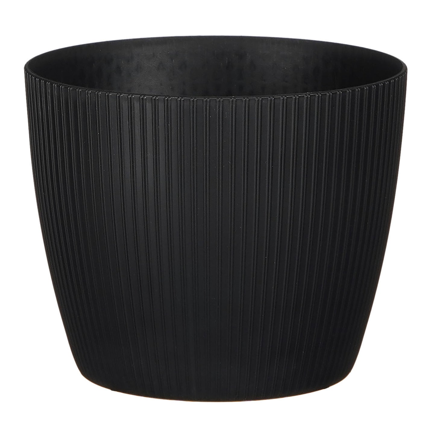Mica Decorations Plantenpot - kunststof - zwart - ribbels- 16x16cm