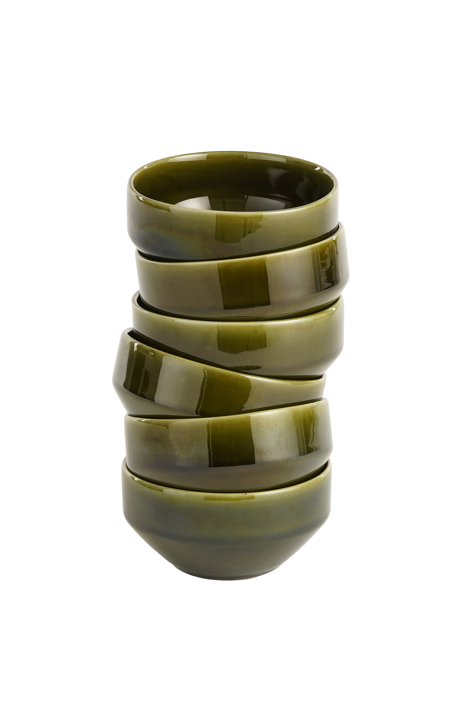 Mica Decorations Rhea Schaal - Set van 6 - Ø12,5 cm - Keramiek - Groen