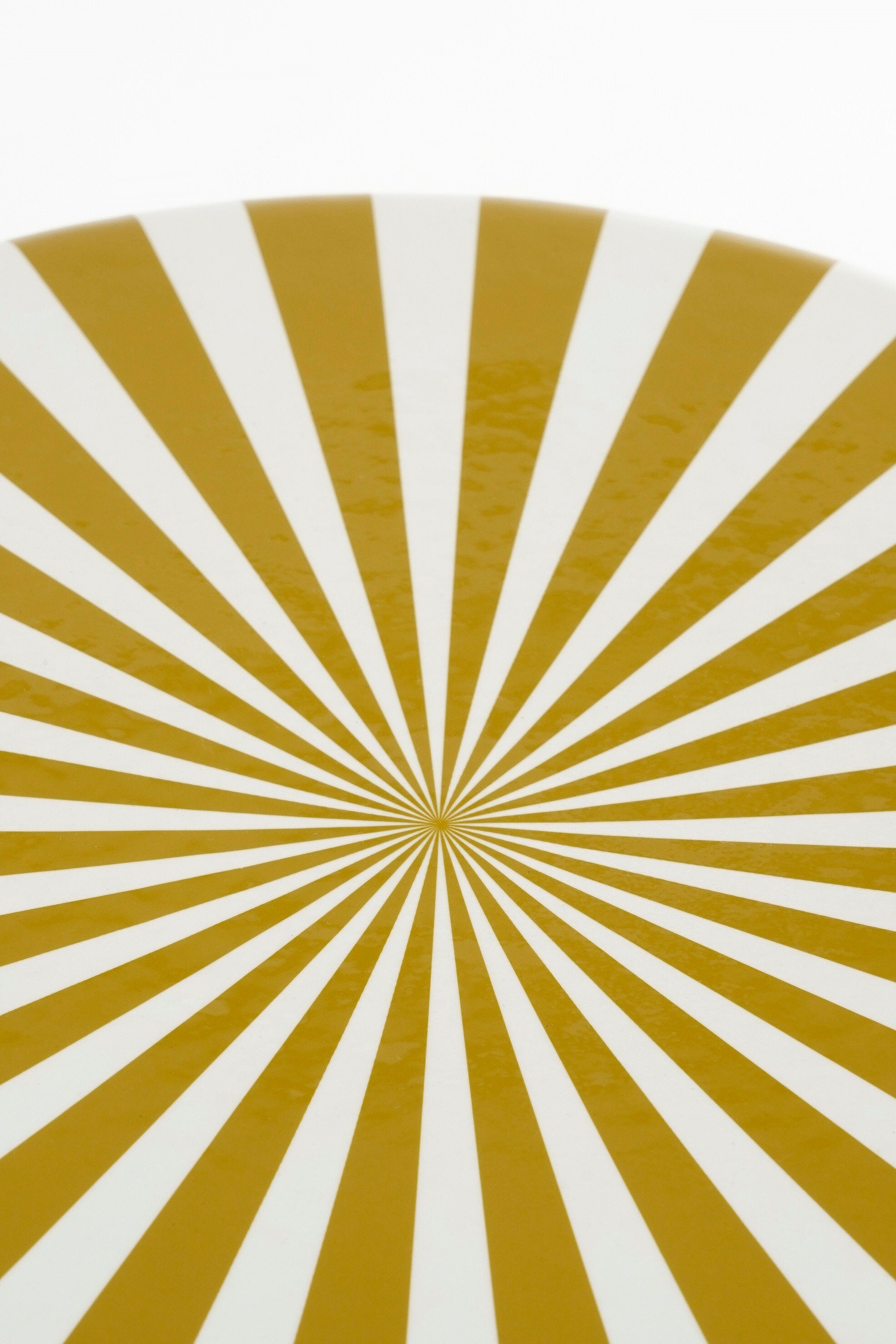 - Ronde vormen en gestreepte print zorgen voor een opvallend en uniek design