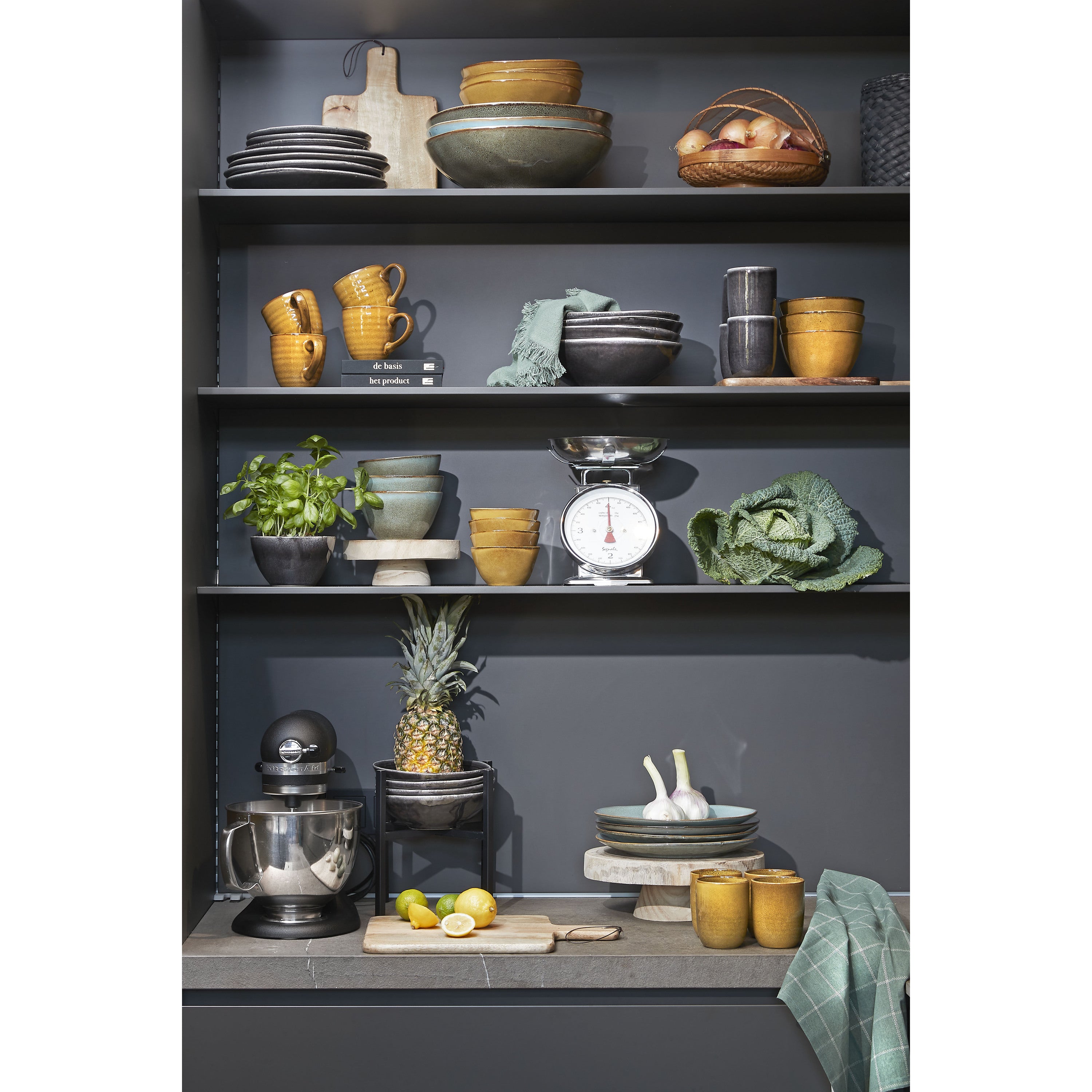 Rustiek en robuust, zo kan het Tabo servies van Mica Decorations het beste worden omschreven. Geen wit porselein met saaie volmaakte lijnen, maar handgemaakte producten van keramiek in neutrale tinten. Elk met een eigen, authentieke look die past bij puur genieten. Nu ook in een stoere, zwarte kleur! Bijvoorbeeld deze schaal van H7,5 x Ø23,5 cm. Mooi in elk interieur en voor van alles te gebruiken! Bijvoorbeeld voor een pasta, een salade of wat brood. Het diepe bord is hittebestendig tot 180 °C en kan zowel in de magnetron als in de vaatwasser worden gezet. Combineer dit product met andere items uit de Tabo serie en maak het servies compleet.