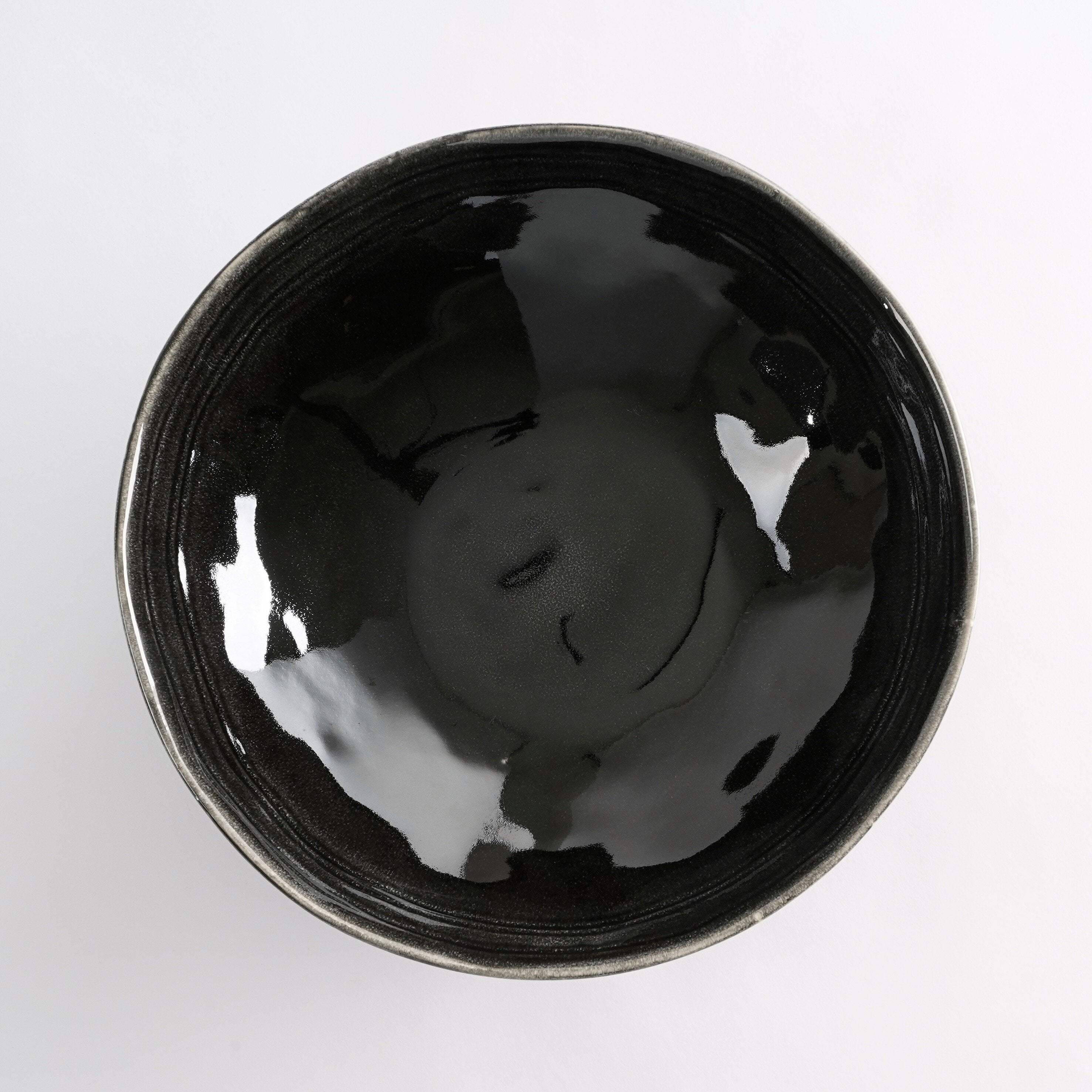 Handgemaakte schaal van keramiek in een moderne, zwarte kleur. Het diepe bord heeft een afmeting van H7,5 x Ø23,5 cm.