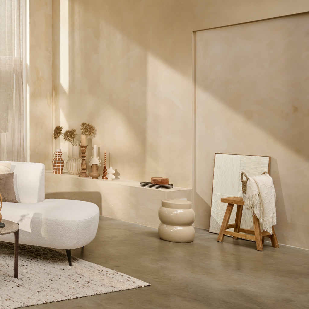 Mica Decorations Vendi Bijzettafel - H40 x Ø35 cm - Crème