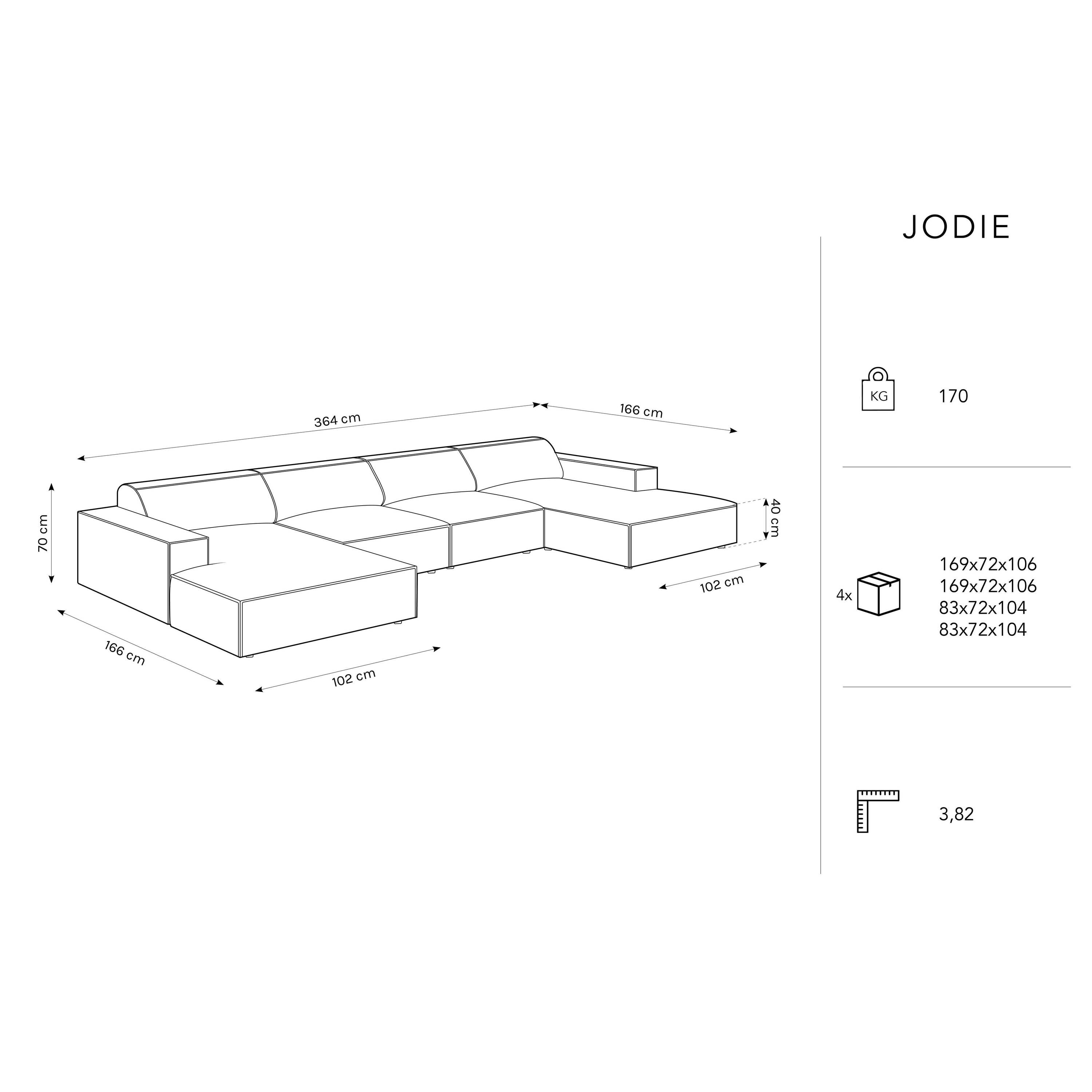 Maat | breedte 364 cm x diepte 166 cm x hoogte 70 cm |