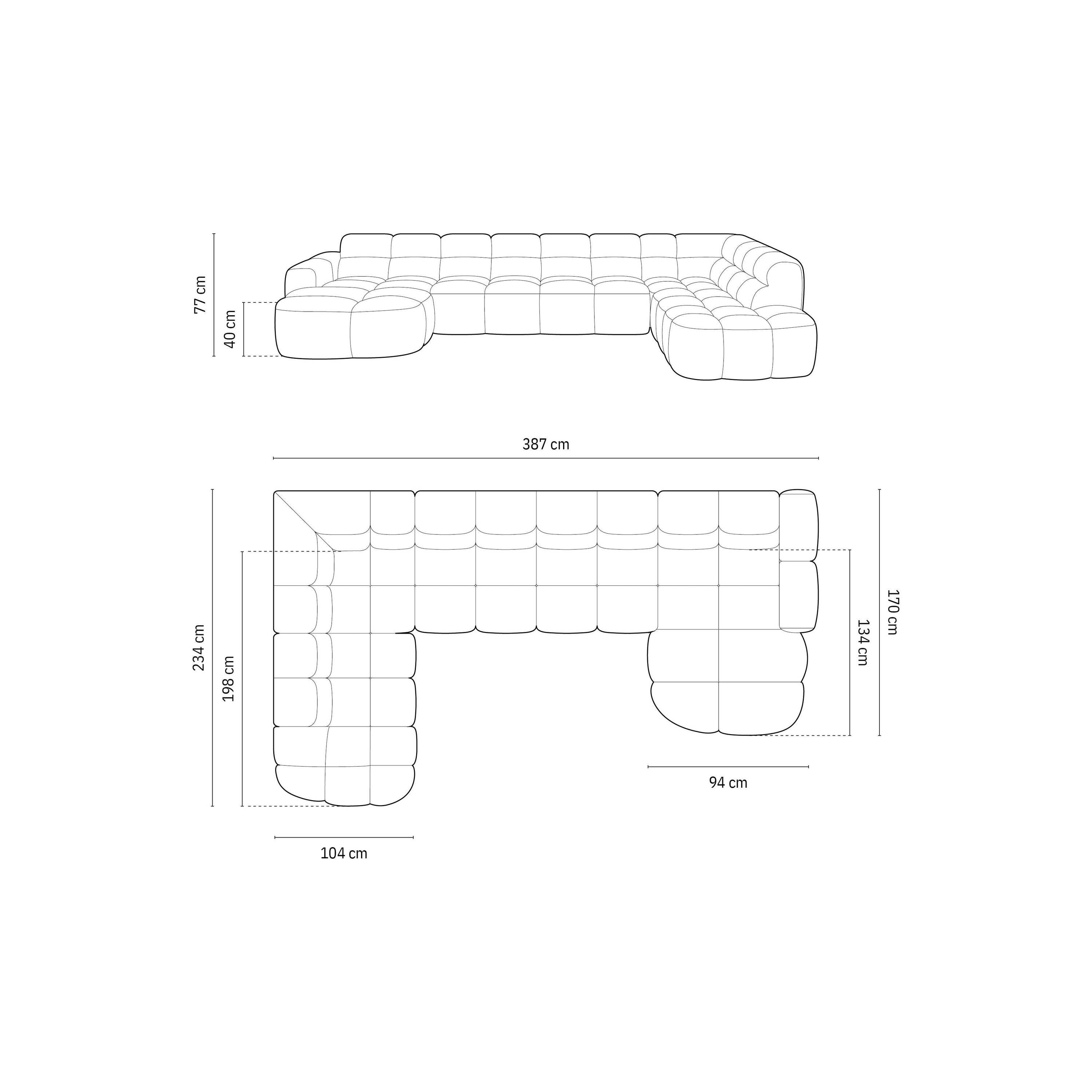 - Royale U-bank van H 79 x B 387 x 234 cm