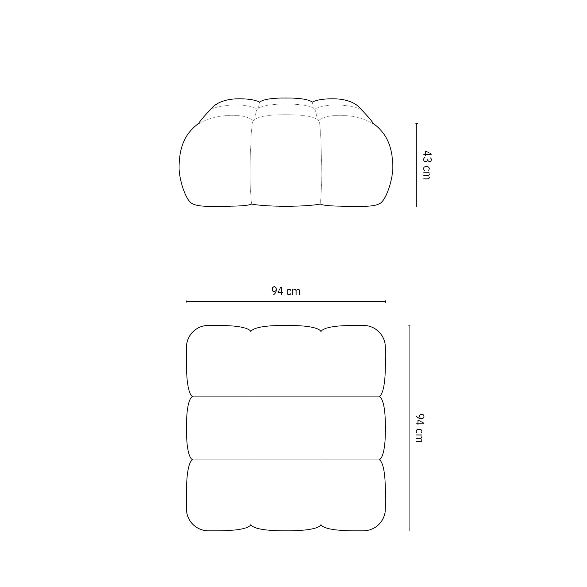 - Stijlvolle hocker met de afmetingen H 43 x B 94 x D 94 cm