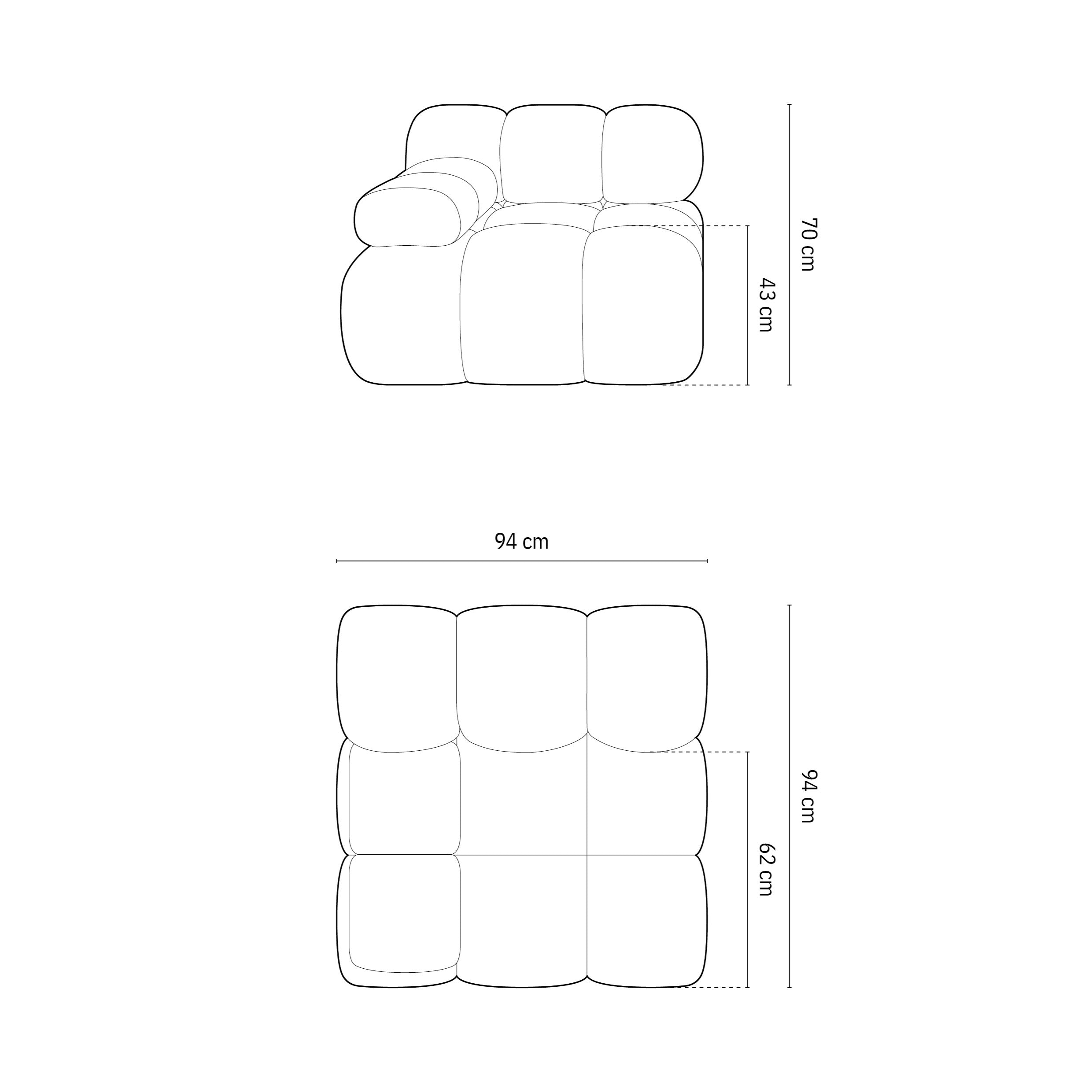 - Stijlvol hoekelement met de afmetingen H 70 x B 94 x D 94 cm