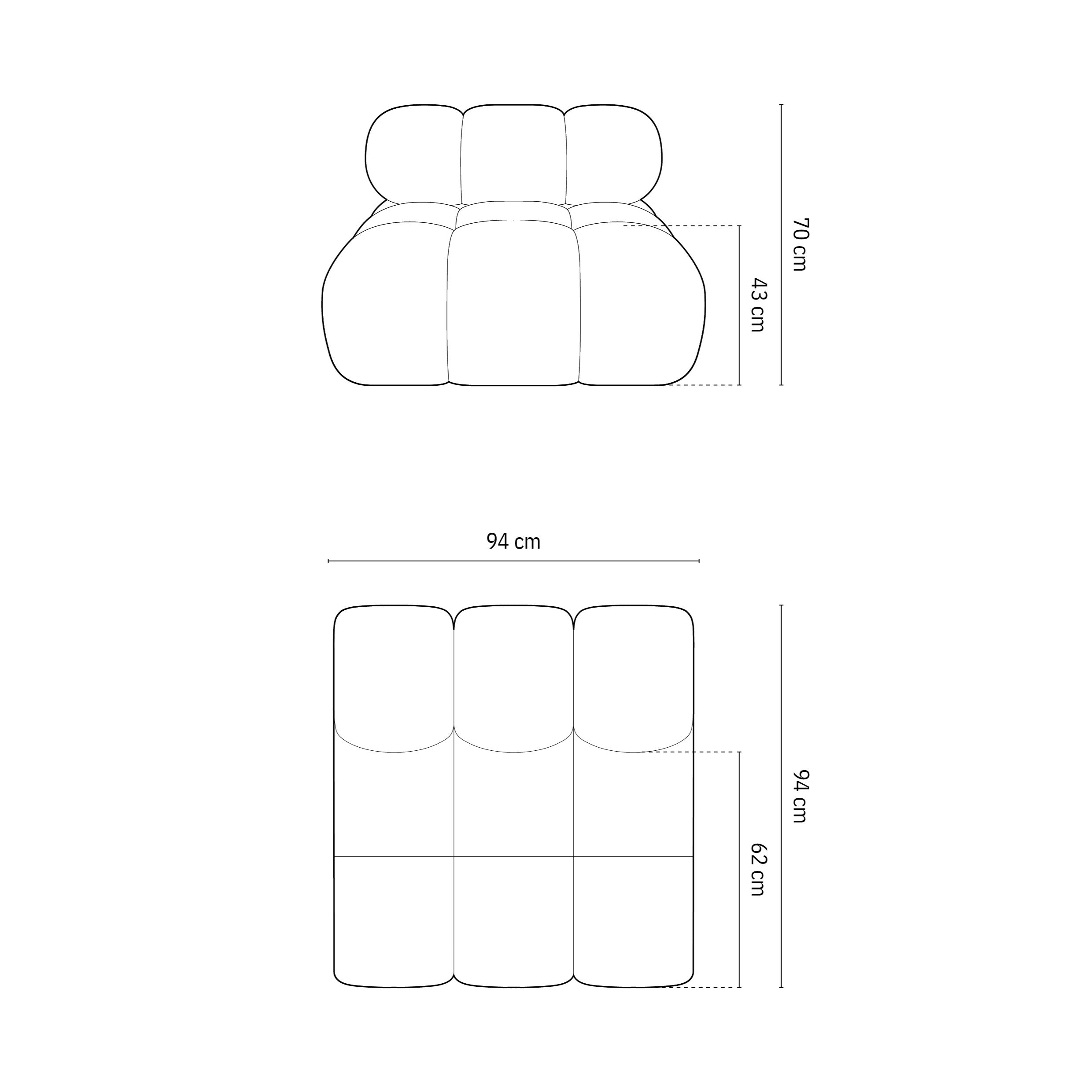 - Modulair middenstuk met de afmetingen H 70 x B 94 x D 94 cm
