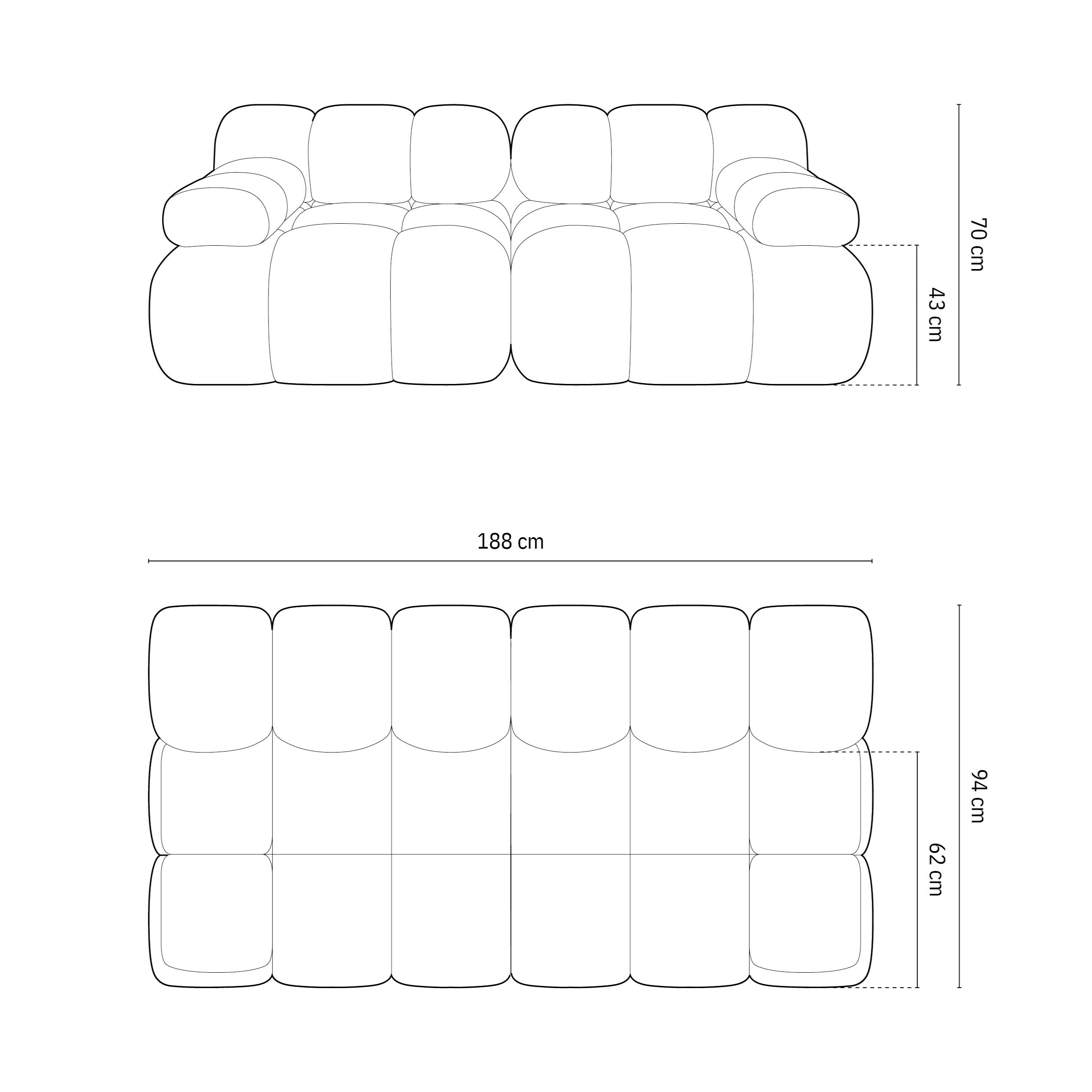 Maat | breedte 188 cm x diepte 94 cm x hoogte 63 cm |