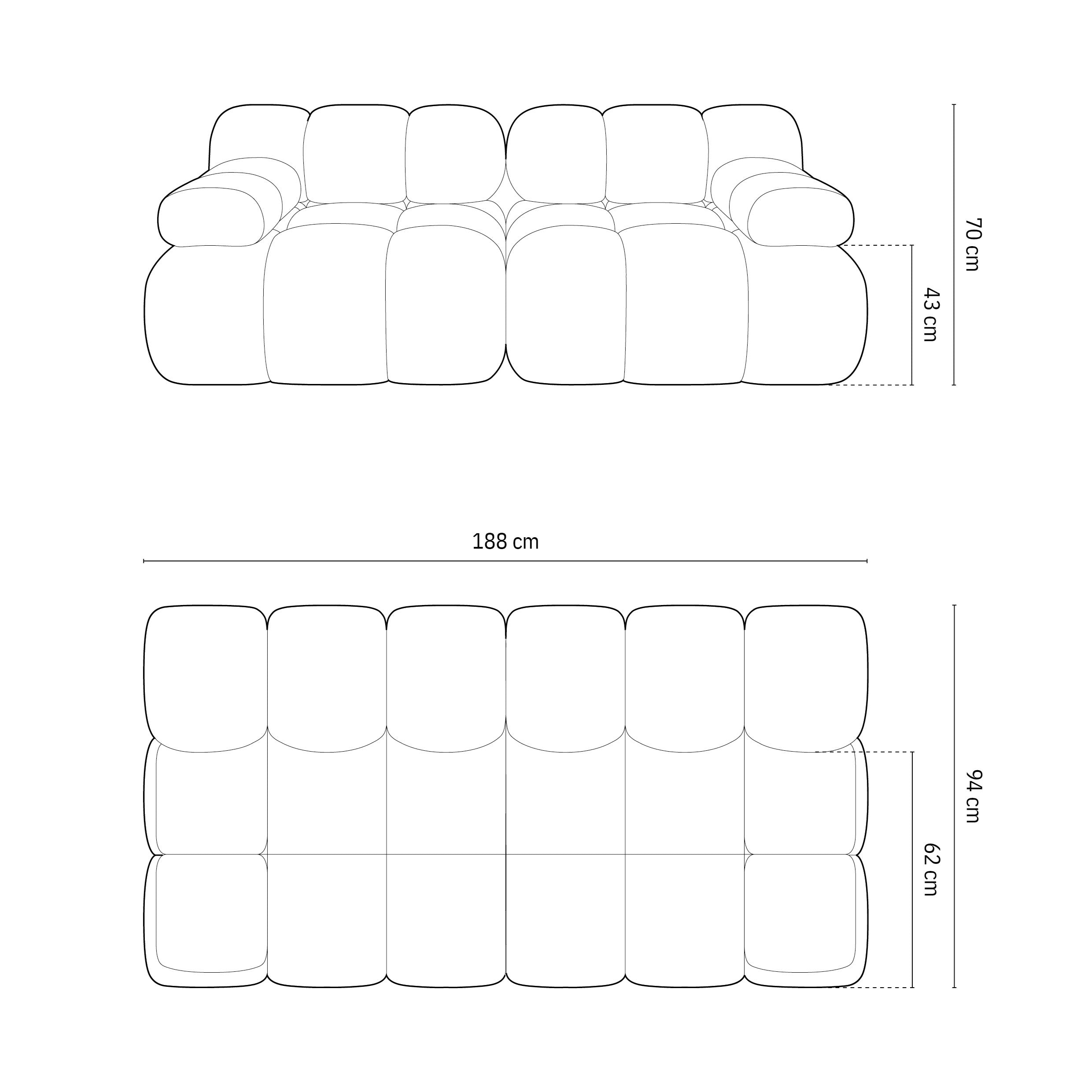 Maat | breedte 188 cm x diepte 94 cm x hoogte 63 cm |