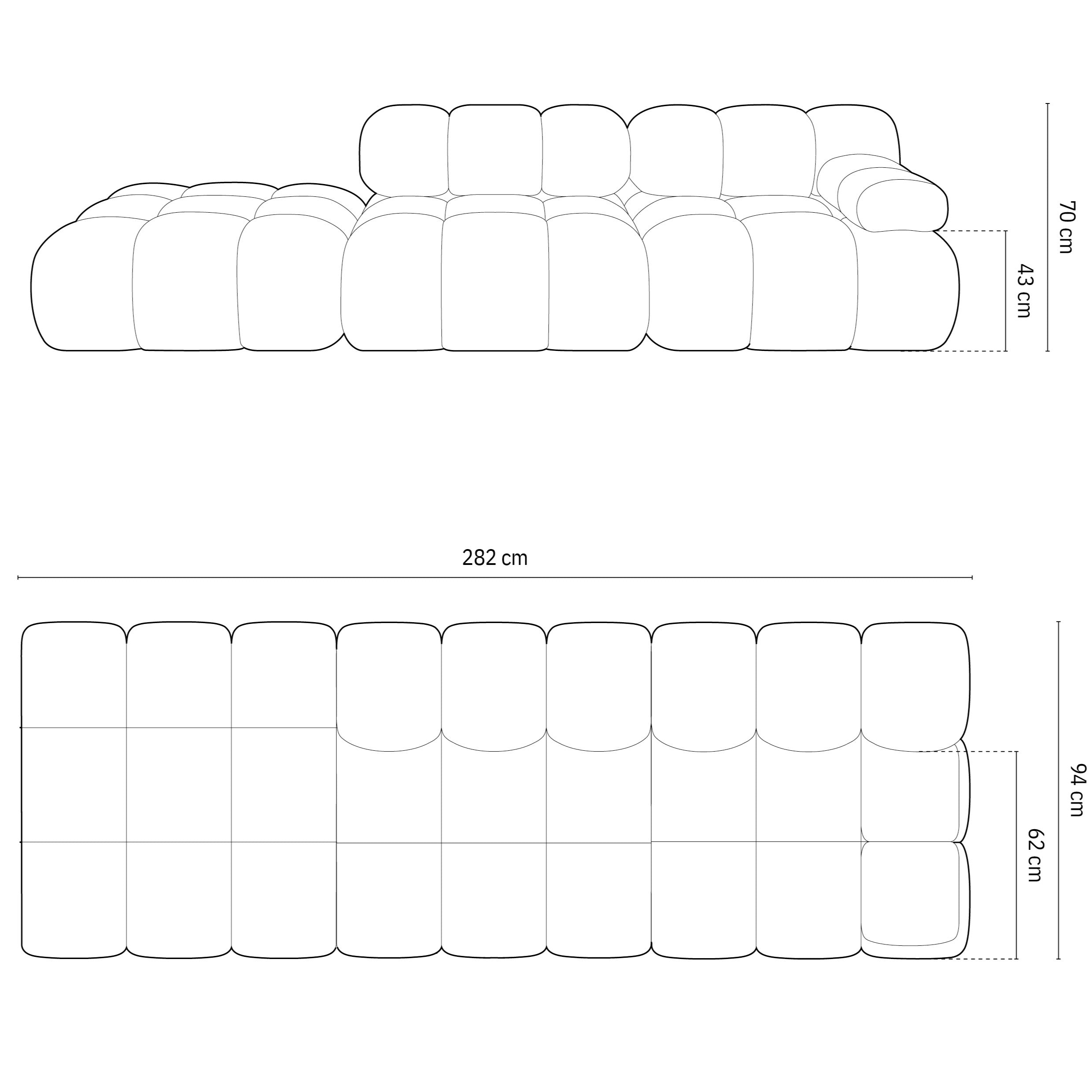 Maat | breedte 282 cm x diepte 94 cm x hoogte 63 cm |