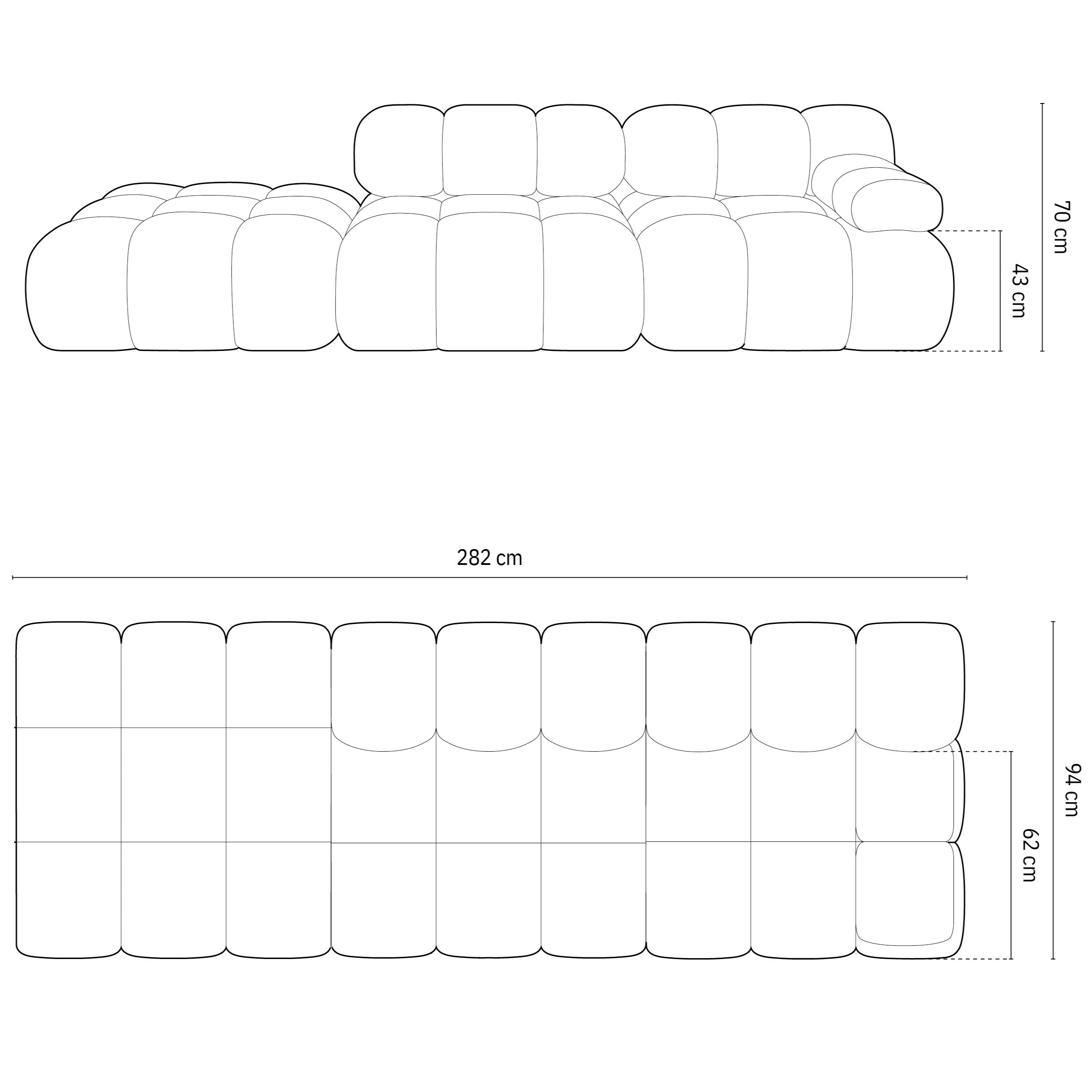 Maat | breedte 282 cm x diepte 94 cm x hoogte 63 cm |