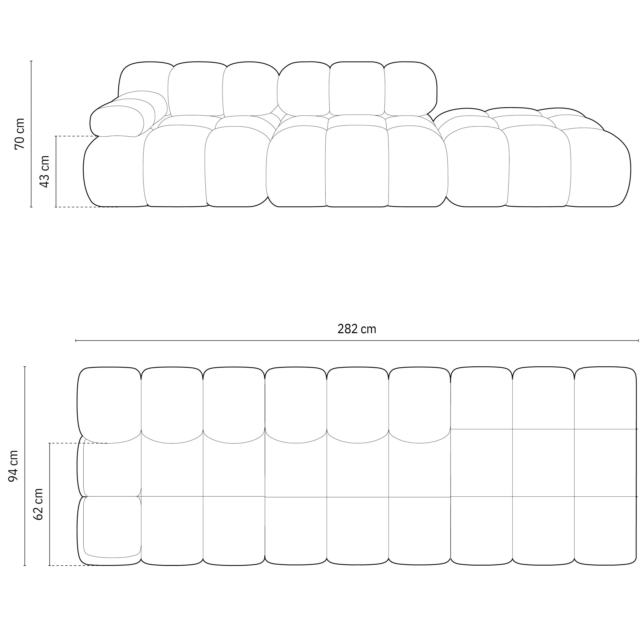 Maat | breedte 282 cm x diepte 94 cm x hoogte 63 cm |