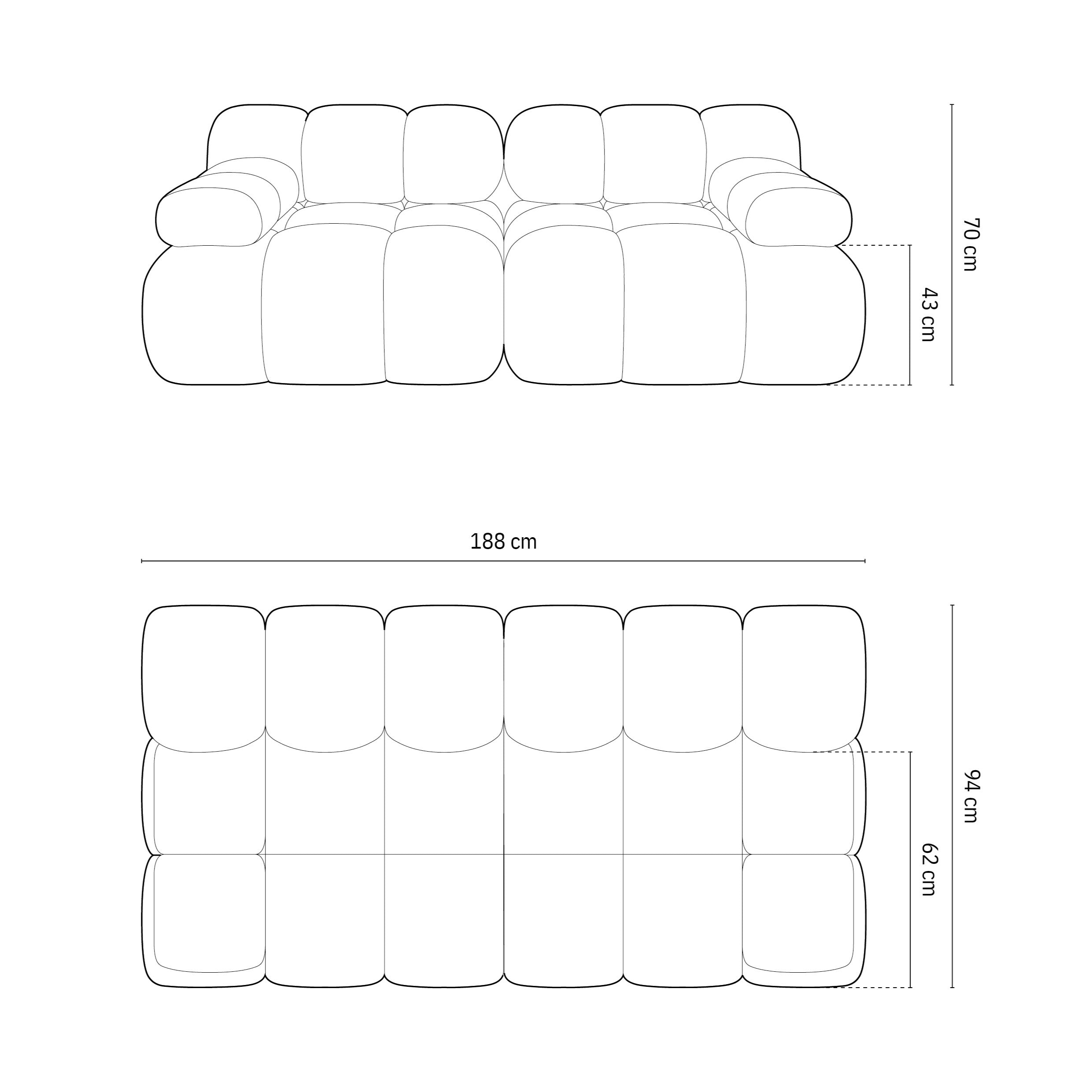 Maat | breedte 188 cm x diepte 94 cm x hoogte 63 cm |