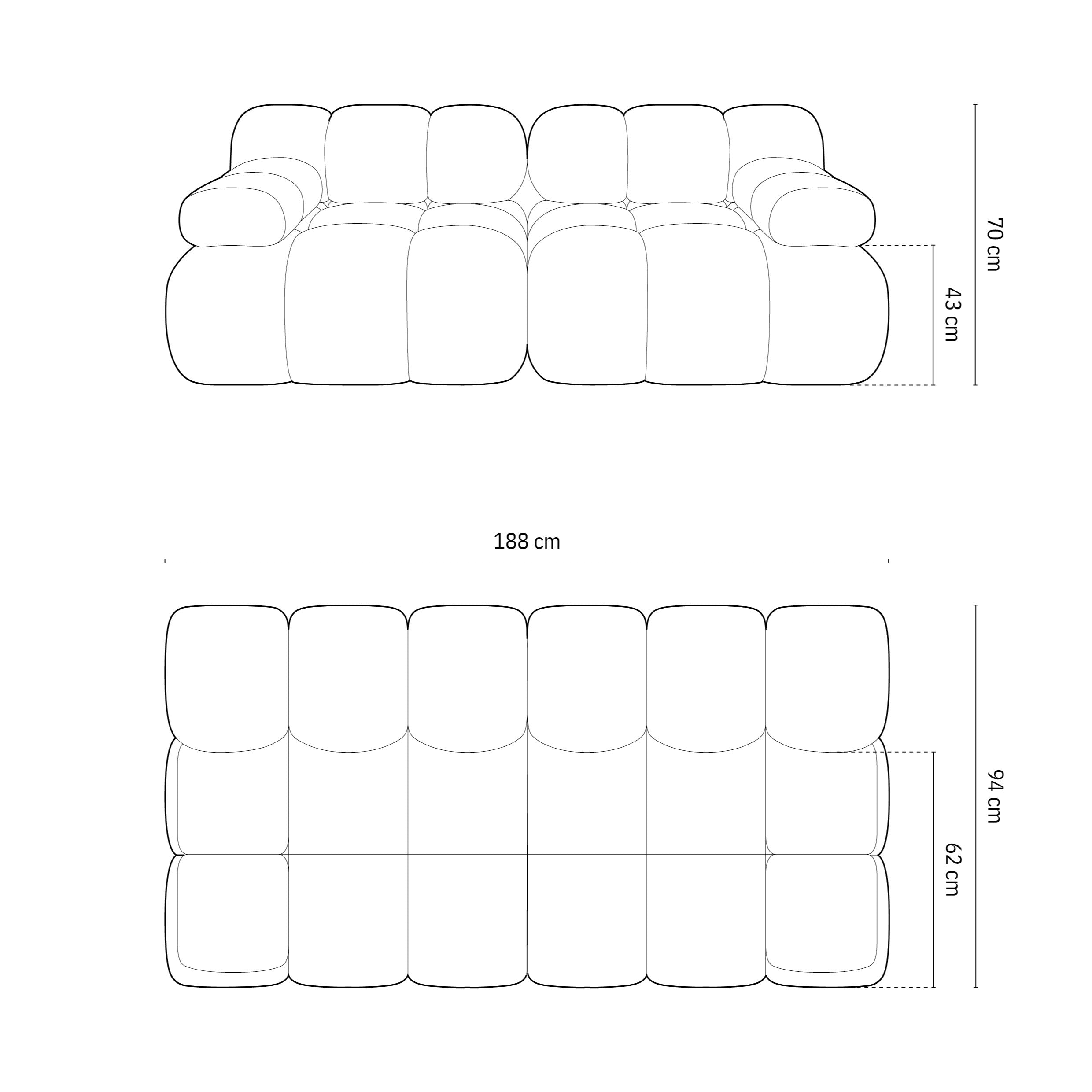 Maat | breedte 188 cm x diepte 94 cm x hoogte 63 cm |