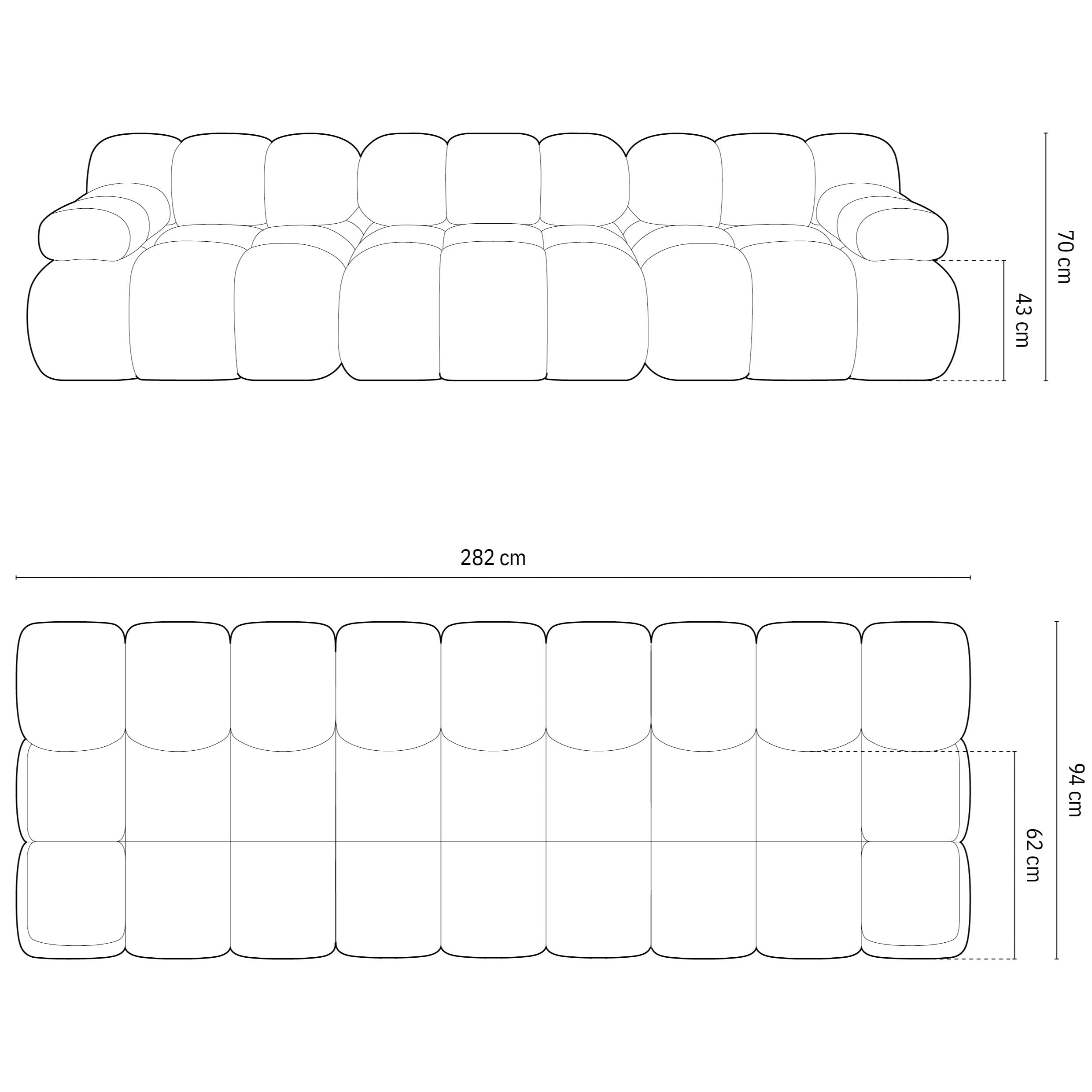 Maat | breedte 282 cm x diepte 94 cm x hoogte 63 cm |