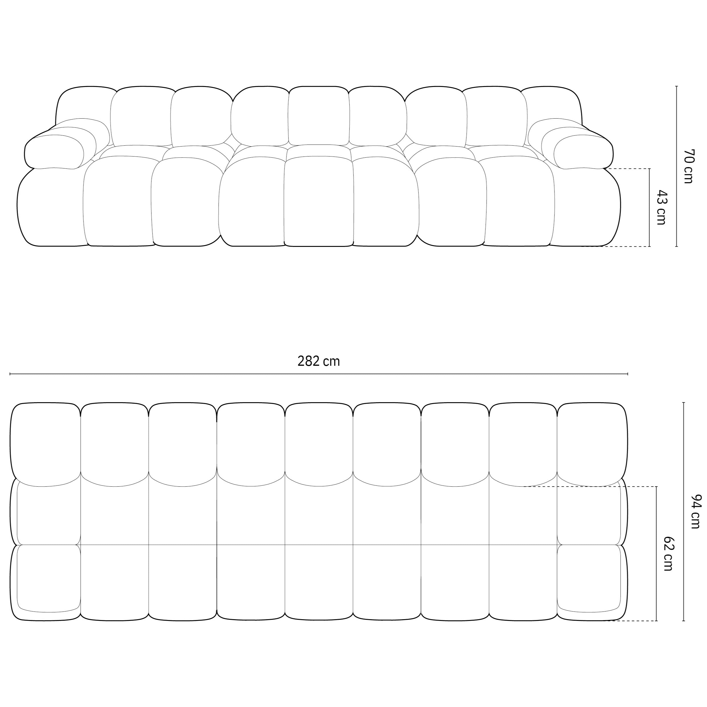 Maat | breedte 282 cm x diepte 94 cm x hoogte 63 cm |