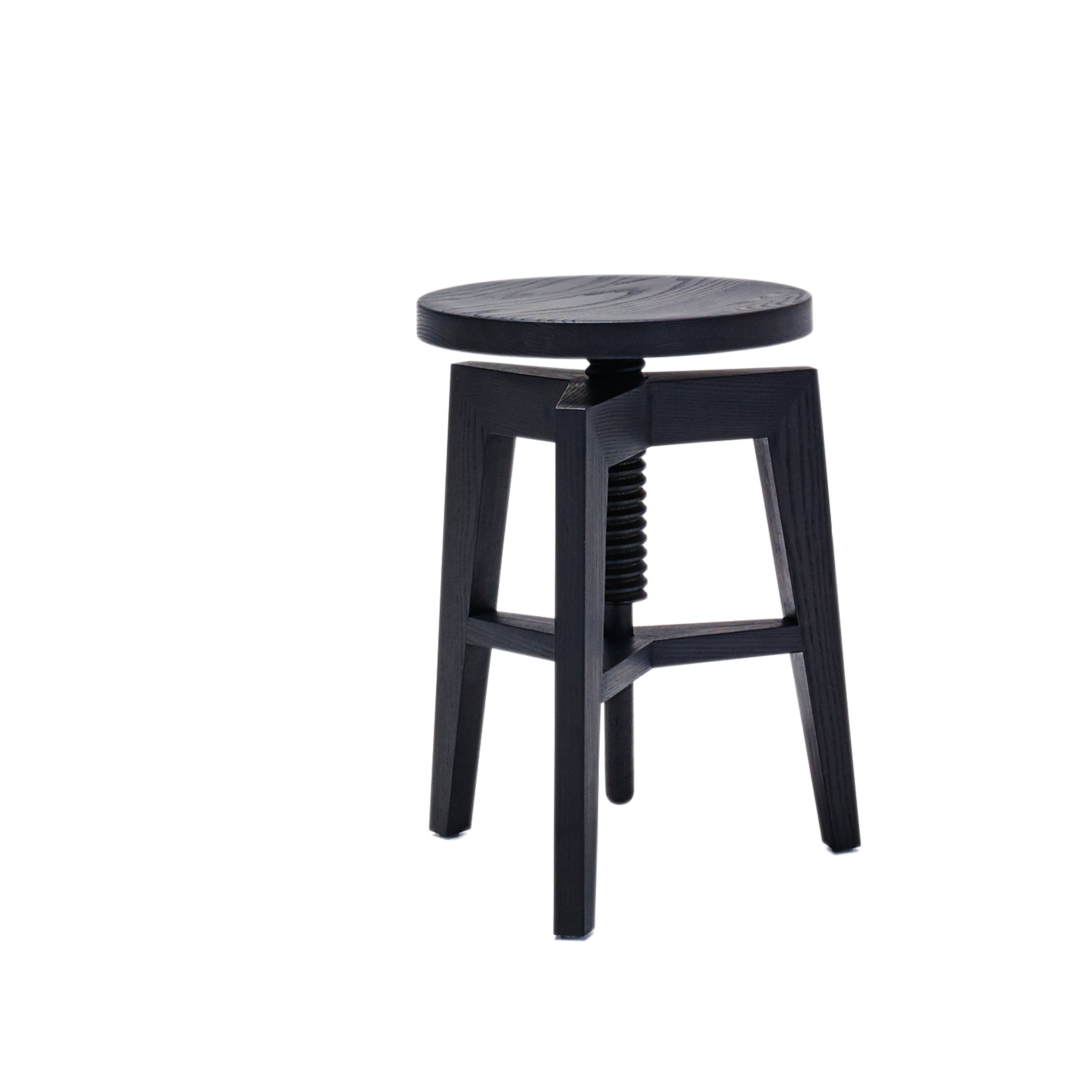 De SCREW BENCH Small vormt de basis van de ontwerpfilosofie van de MINT-collectie—gekenmerkt door schuine lijnen, natuurlijk massief hout en de modulair verstelbare zithoogte.