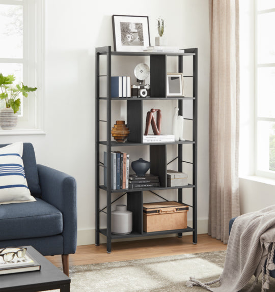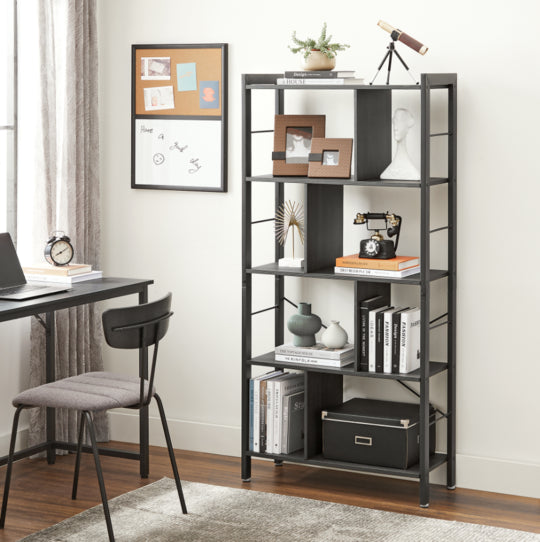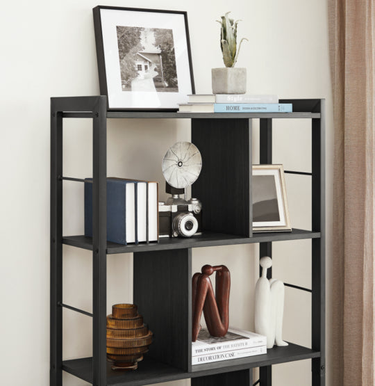 Dankzij het strakke ontwerp met rechte lijnen is dit zwarte boekenrek geschikt voor vele doeleinden. Gebruik het voor planten en fotolijstjes in de gang of voor bestanden en opbergdozen in je studeerkamer.