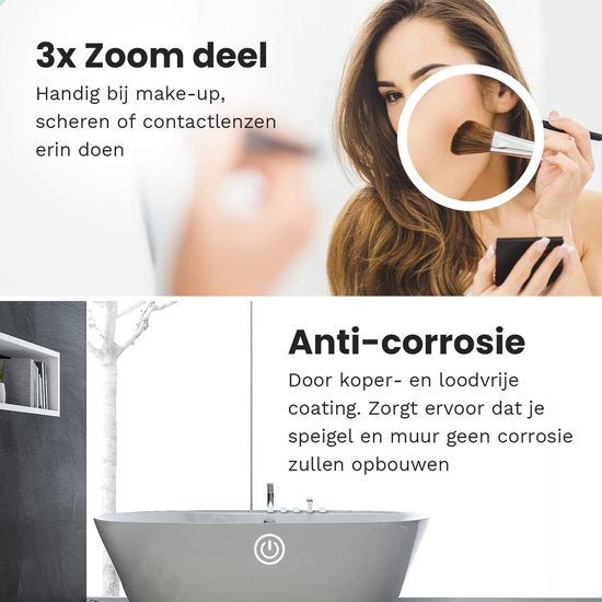 - De gehele spiegel is roestvrij en IP44 spatwaterdicht.