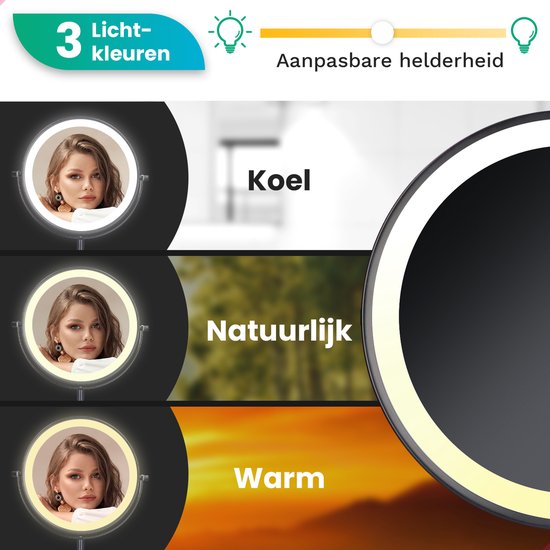 ✓ Meerdere lichtstanden Liever fel of juist wat warmer licht? Onze led spiegel heeft 3 verschillende lichtstanden voor de perfecte tint. Pas het helderheidsniveau aan met één druk op de knop en geniet van perfect licht, zelfs als het donker wordt. Deze Make-Up spiegel is energiebesparend en gaat na 30 minuten automatisch uit, mocht je vergeten om de lamp uit te zetten.