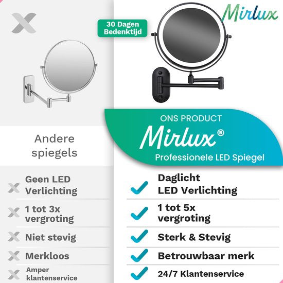 Mirlux Make Up Spiegel met LED Verlichting - 5X Vergroting - Zwart