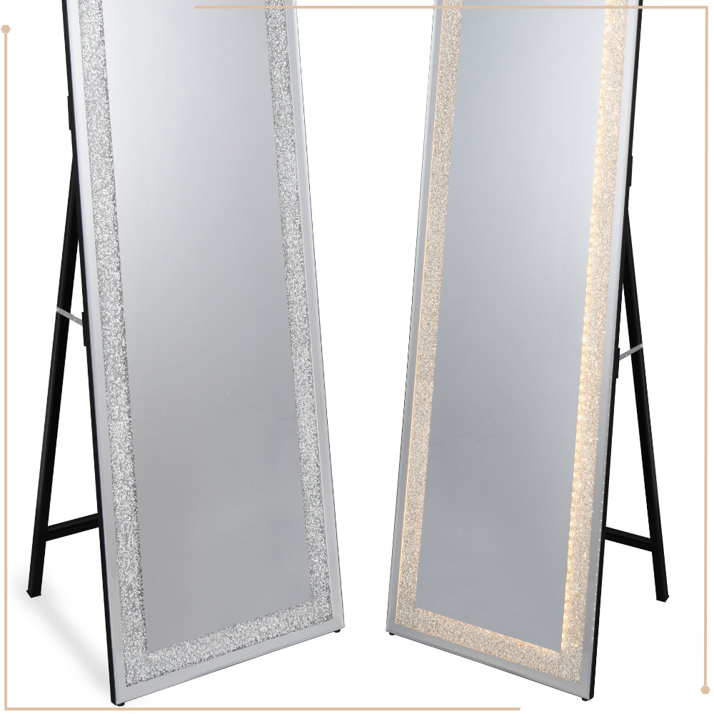 De MIRRORS AND MORE MISOU HERMINE is een elegante en functionele staande passpiegel met geïntegreerde LED-verlichting, ontworpen om stijlvol aan te sluiten bij ieder interieur. Met een hoogte van 160 cm en een breedte van 40 cm biedt deze spiegel een volledig lichaamsbeeld en is daarmee perfect voor in de slaapkamer, kleedruimte of hal. Dankzij de heldere ingebouwde LED-verlichting rondom de spiegel, heb je altijd optimaal zicht – ideaal voor het aanbrengen van make-up, het samenstellen van outfits of een snelle outfitcheck voor je de deur uitgaat. De verlichting wordt eenvoudig bediend via een aanraakschakelaar, wat zorgt voor gebruiksgemak en een moderne uitstraling.