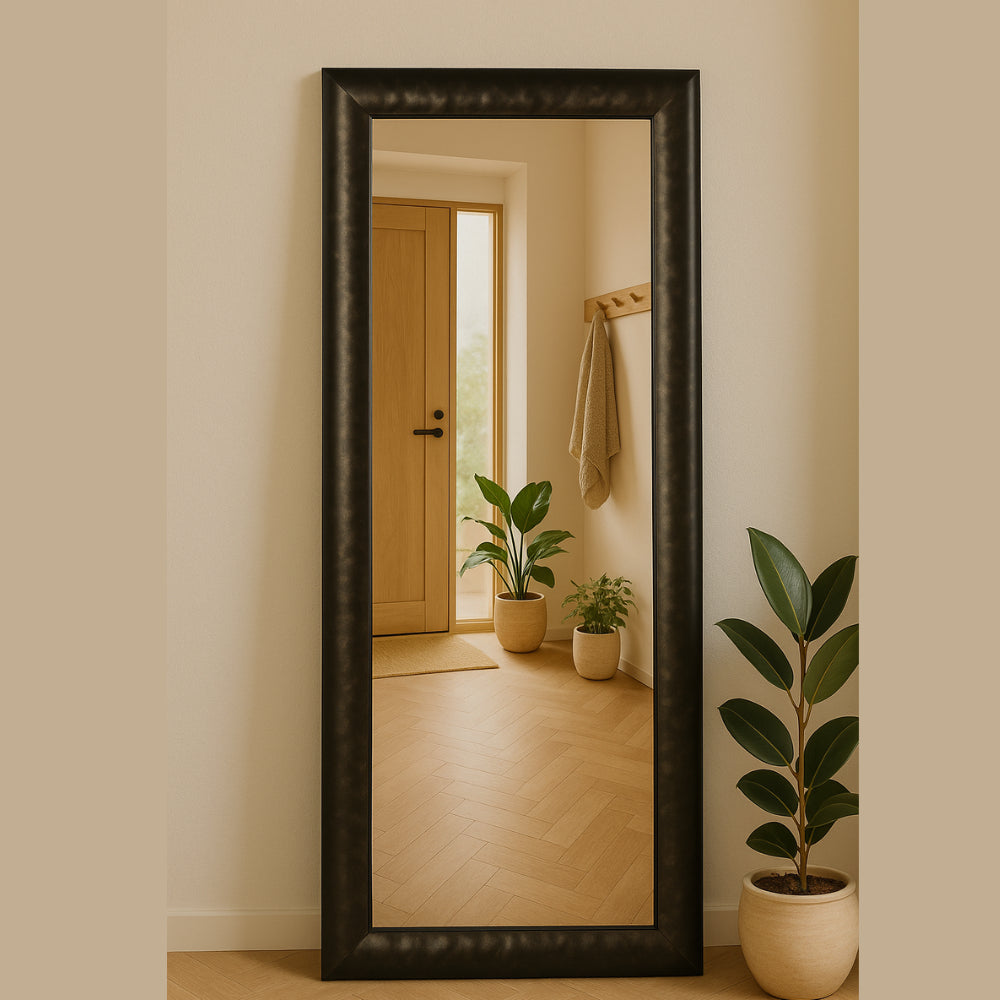Breng elegantie en ruimtelijkheid in je interieur met de MIRRORS AND MORE MISOU ELLI Spiegel. Deze grote spiegel van 190x90 cm functioneert perfect als passpiegel, wandspiegel of staande spiegel, en is daarmee een veelzijdige aanwinst voor elke ruimte – van de hal tot de slaapkamer of kleedkamer. Het minimalistische zwarte frame geeft de spiegel een moderne en tijdloze uitstraling. De royale afmetingen maken hem ideaal om jezelf van top tot teen te bekijken en laten kleine ruimtes groter en lichter lijken. Of je hem nu ophangt of los tegen de muur plaatst, de ELLI-spiegel is zowel een praktisch als stijlvol woonaccessoire.