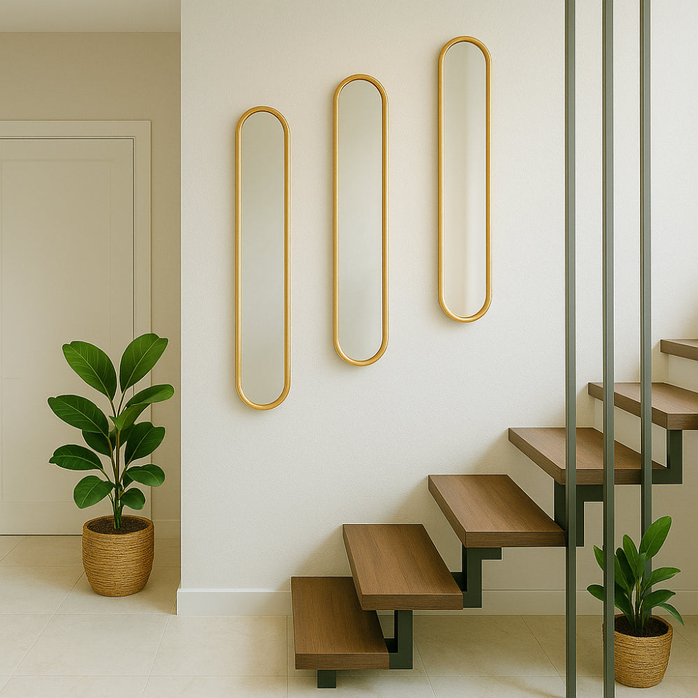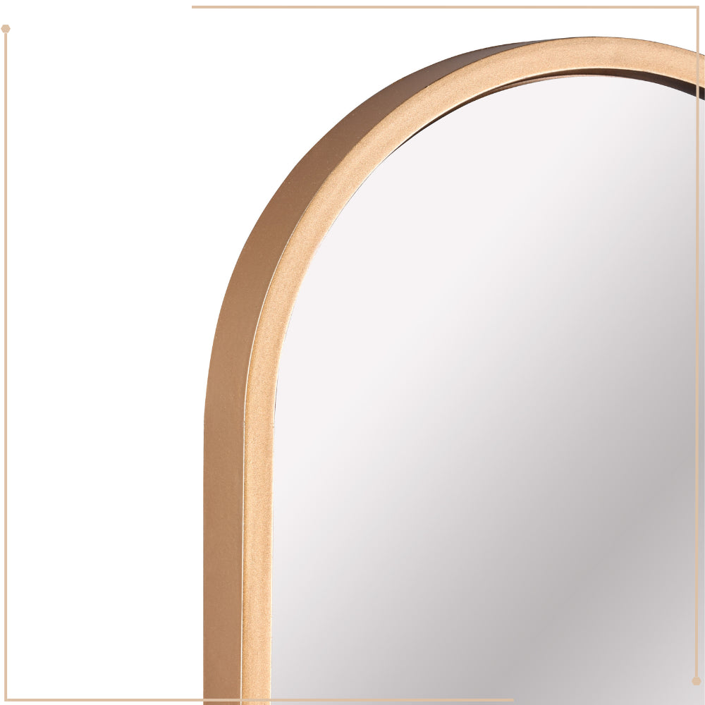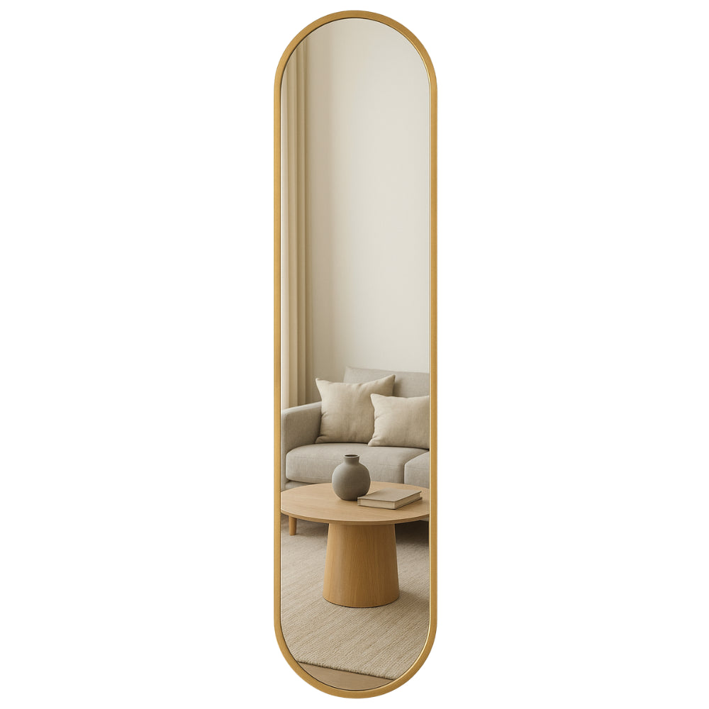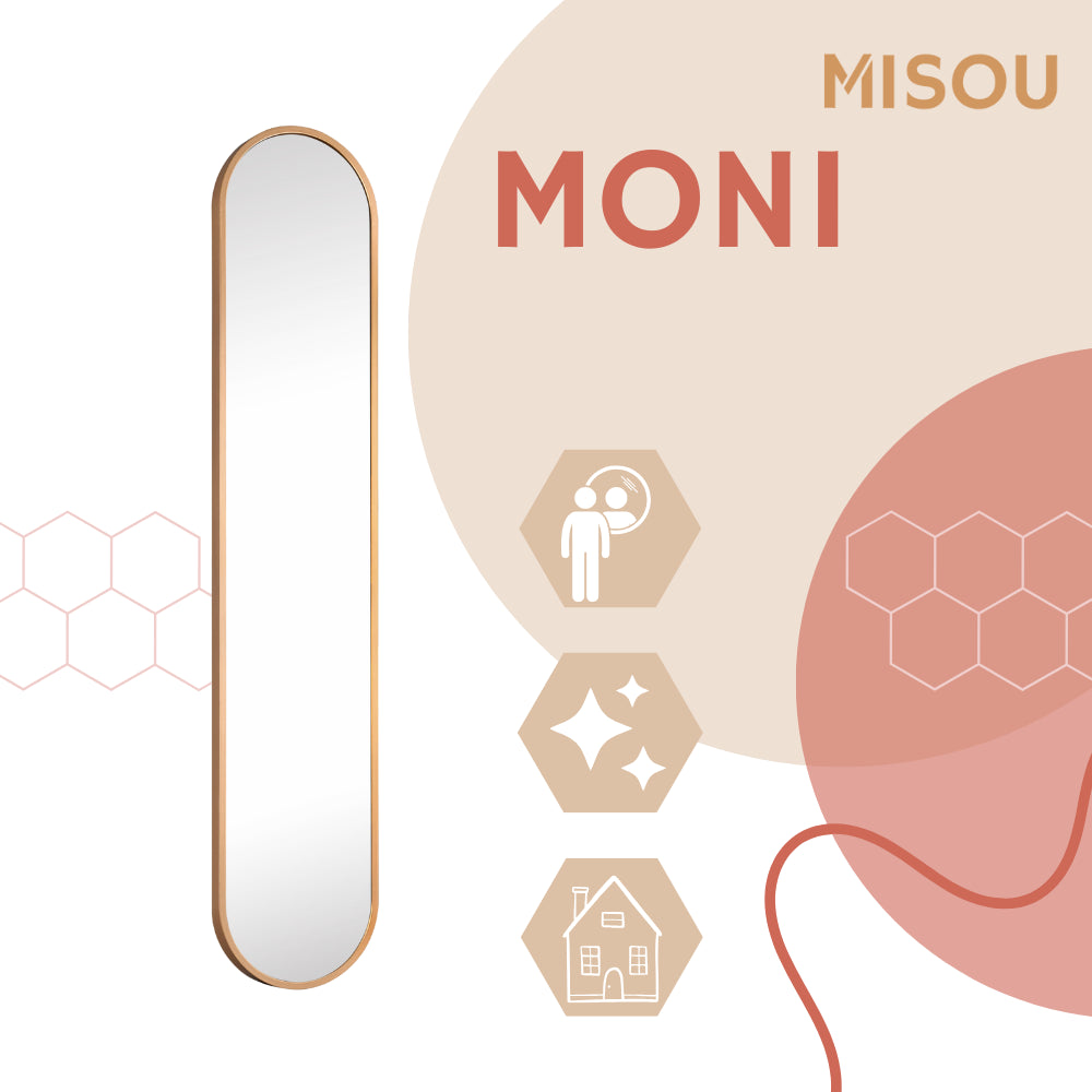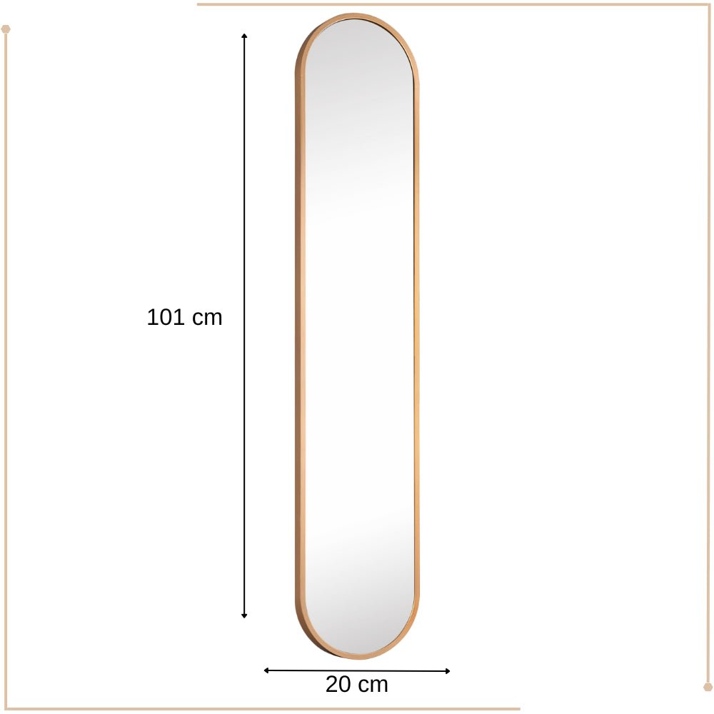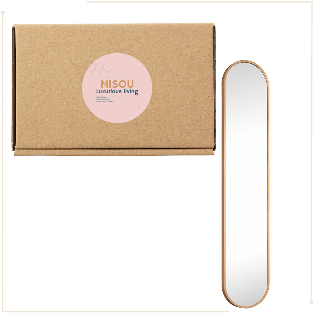 De MIRRORS AND MORE MISOU MONI Spiegel is een stijlvolle en moderne toevoeging aan elk interieur. Deze passpiegel heeft een slank ovaal ontwerp, waardoor het een verfijnde uitstraling heeft die zowel in de hal, slaapkamer als in de woonkamer kan worden geplaatst. Het Goude frame geeft de spiegel een eigentijdse, minimalistische look die perfect past in diverse interieurstijlen, van modern tot industrieel. Met een afmeting van 101x20 cm biedt de staande spiegel een ideaal formaat voor een full-body reflectie, zonder dat deze te veel ruimte in beslag neemt. De wandspiegel kan eenvoudig aan de muur worden bevestigd, maar kan ook zelfstandig staan dankzij de stabiele constructie. Dit maakt de spiegel veelzijdig en aanpasbaar aan je ruimte en behoeften.
