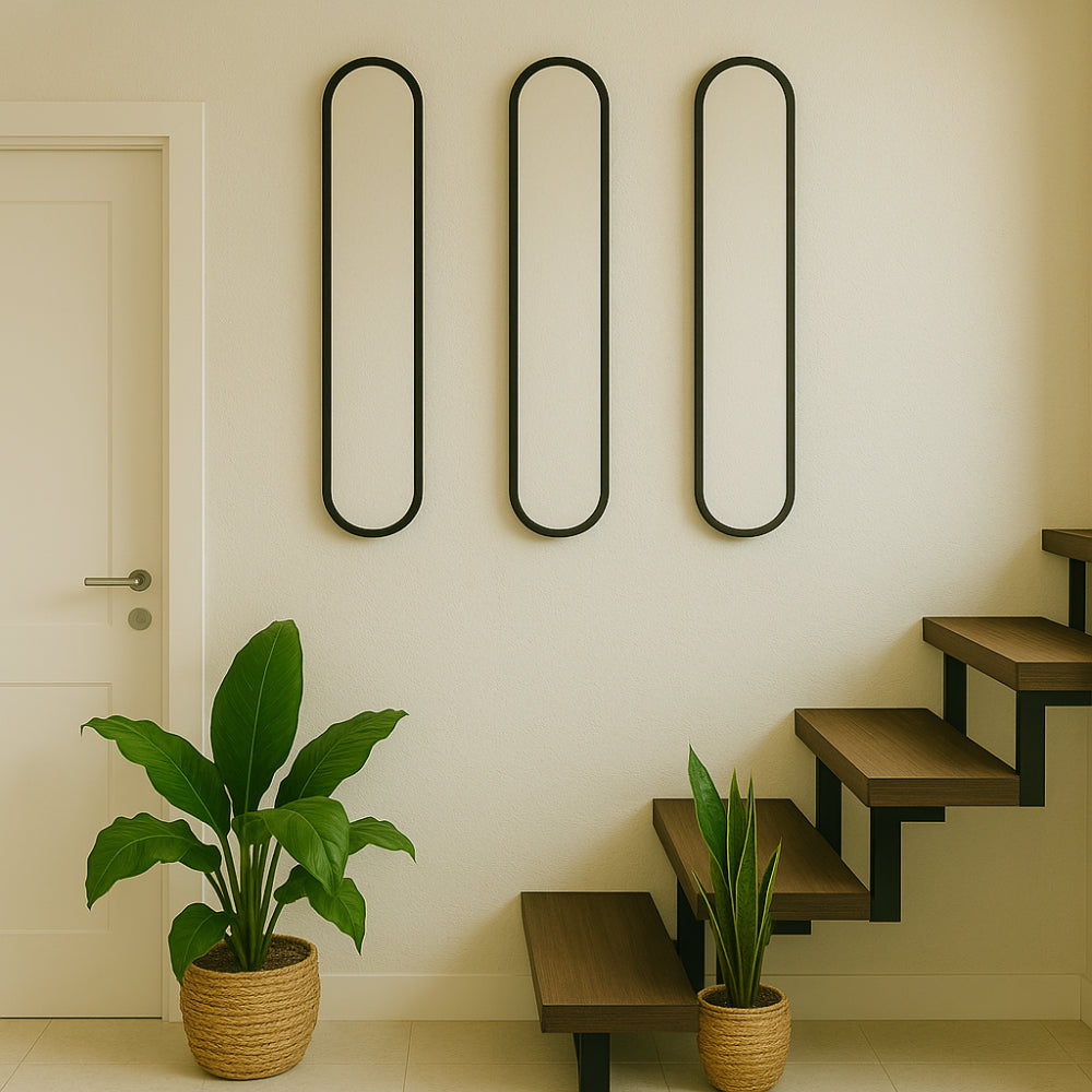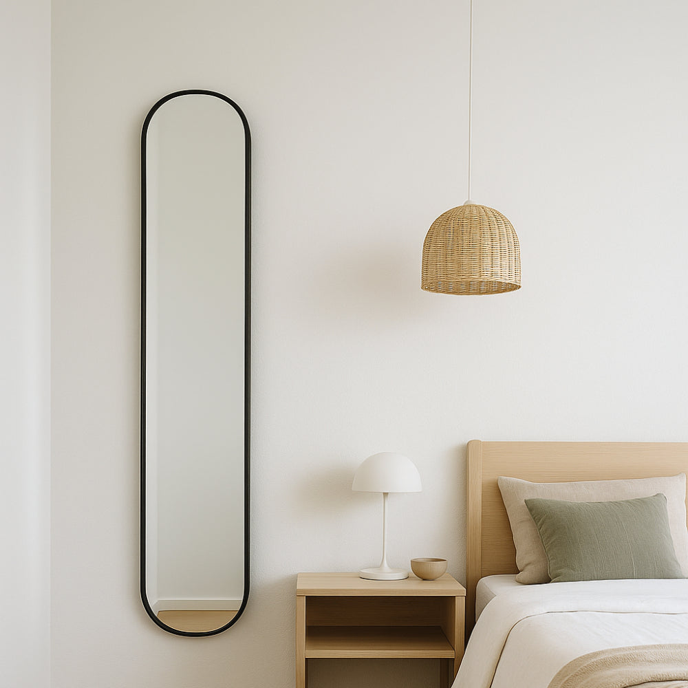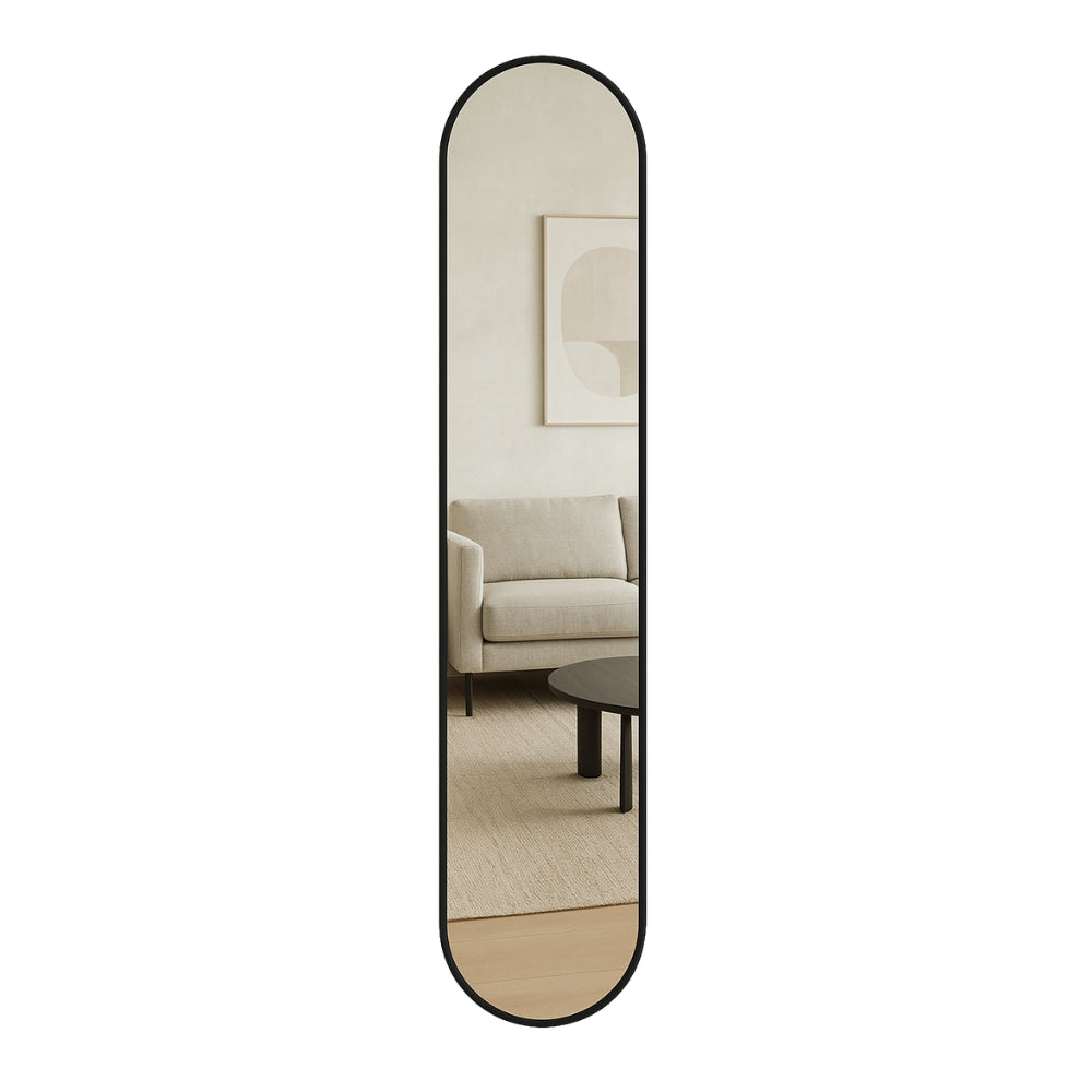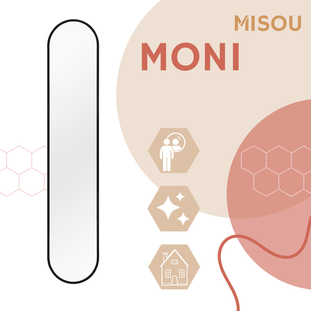 De MIRRORS AND MORE MISOU MONI Spiegel is een stijlvolle en moderne toevoeging aan elk interieur. Deze passpiegel heeft een slank ovaal ontwerp, waardoor het een verfijnde uitstraling heeft die zowel in de hal, slaapkamer als in de woonkamer kan worden geplaatst. Het zwarte frame geeft de spiegel een eigentijdse, minimalistische look die perfect past in diverse interieurstijlen, van modern tot industrieel. Met een afmeting van 101x20 cm biedt de staande spiegel een ideaal formaat voor een full-body reflectie, zonder dat deze te veel ruimte in beslag neemt. De wandspiegel kan eenvoudig aan de muur worden bevestigd, maar kan ook zelfstandig staan dankzij de stabiele constructie. Dit maakt de spiegel veelzijdig en aanpasbaar aan je ruimte en behoeften.