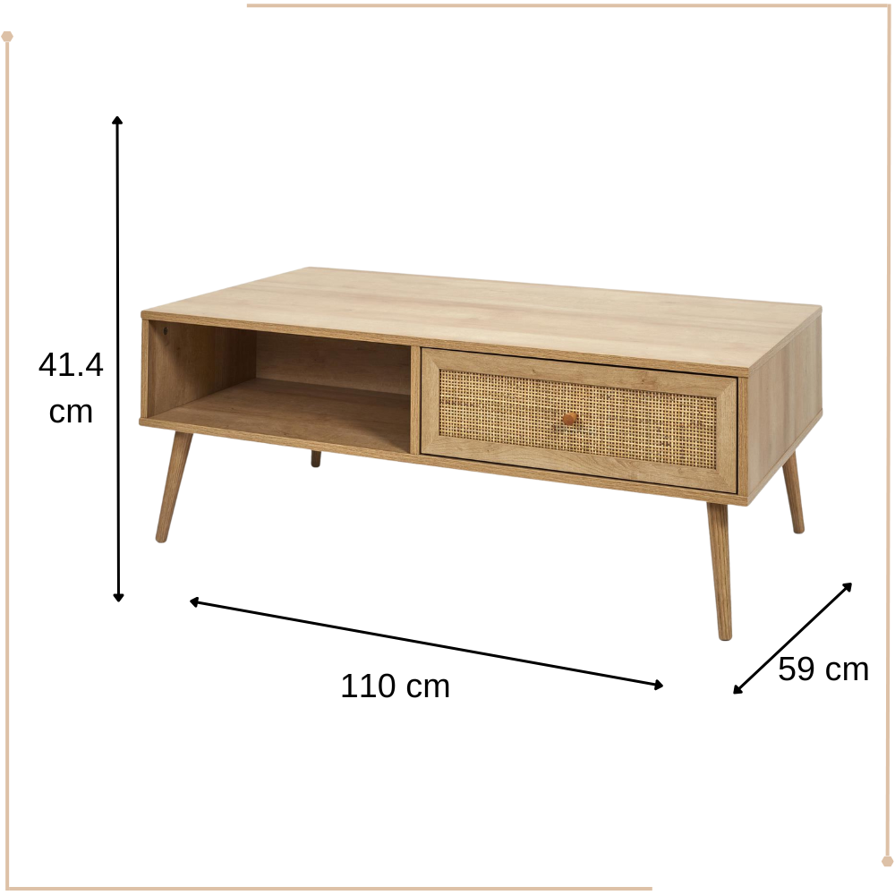 Dankzij het tijdloze ontwerp en de natuurlijke materialen past de tafel moeiteloos binnen zowel moderne als landelijke of Scandinavische interieurs. De combinatie van functionaliteit en stijl maakt deze tafel een echte sfeermaker in elke zithoek.