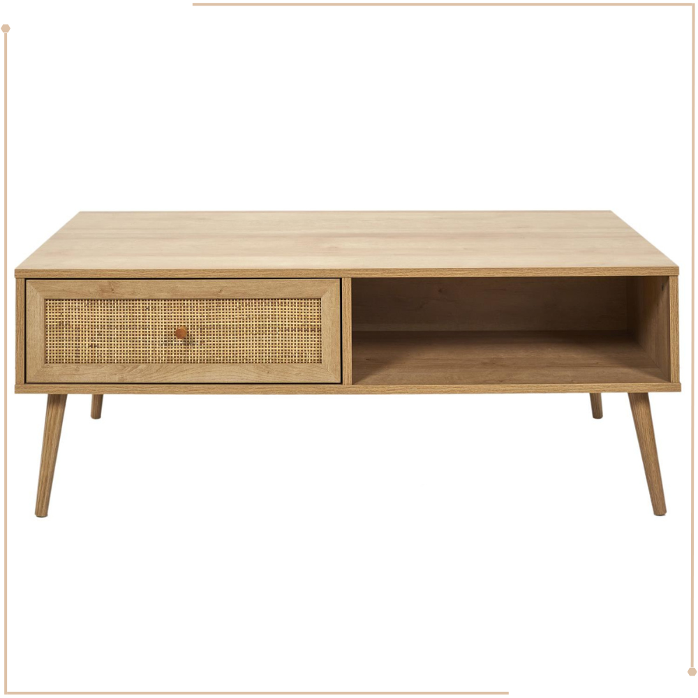 Natuurlijk, functioneel en stijlvol – de MISOU Bali Koffietafel brengt rust en karakter in je woonkamer. Deze rechthoekige salontafel is uitgevoerd in warme houttinten en afgewerkt met rotan details, wat zorgt voor een luchtige, bohemien uitstraling. De tafel beschikt over een handige opbergruimte onder het tafelblad – ideaal voor tijdschriften, afstandsbedieningen of andere dagelijkse essentials.