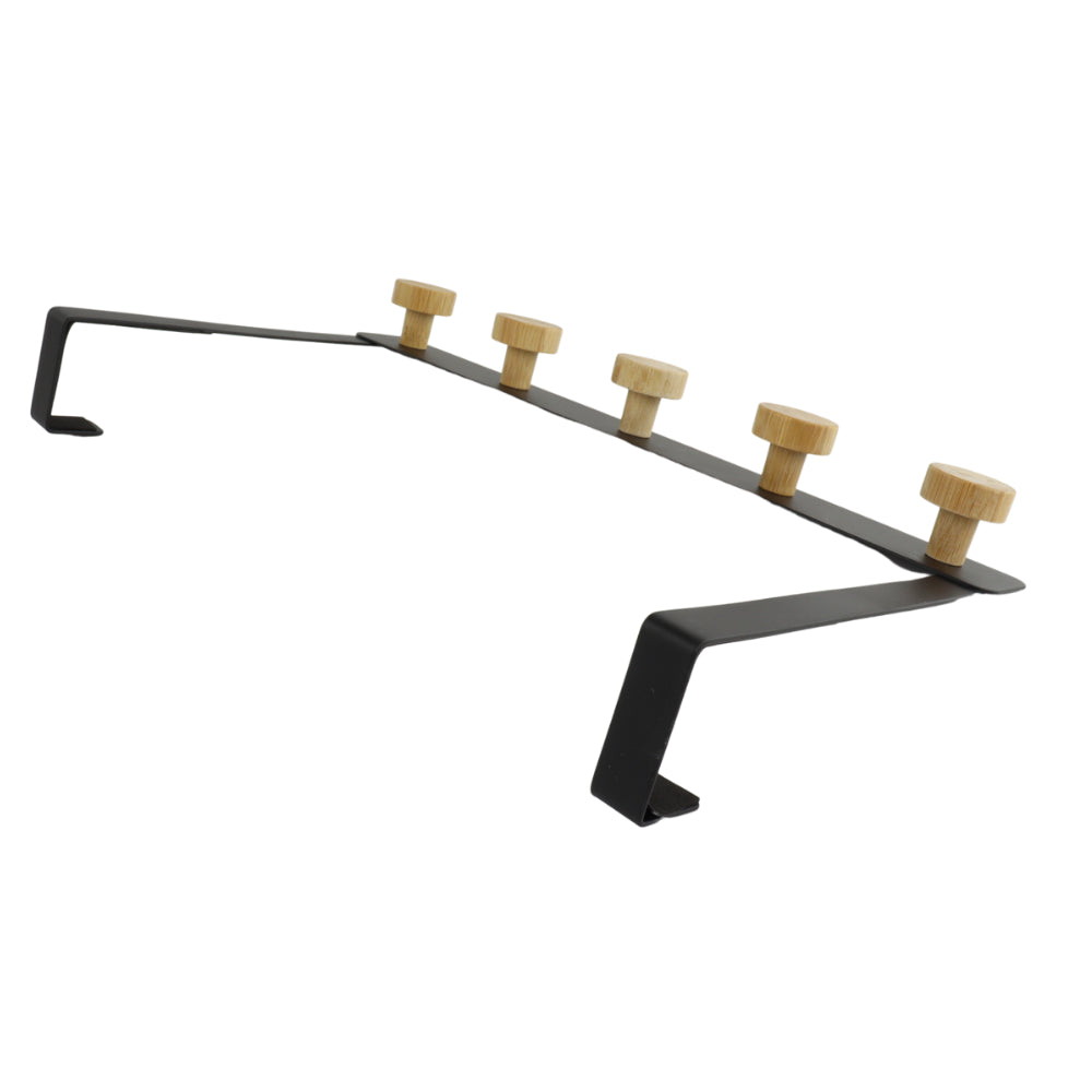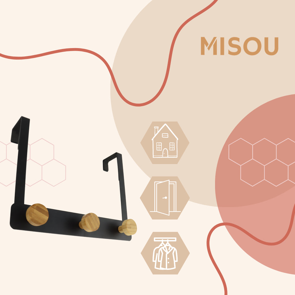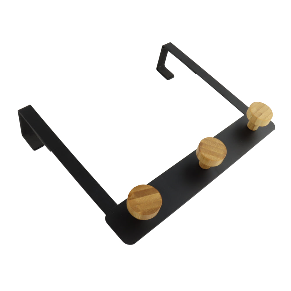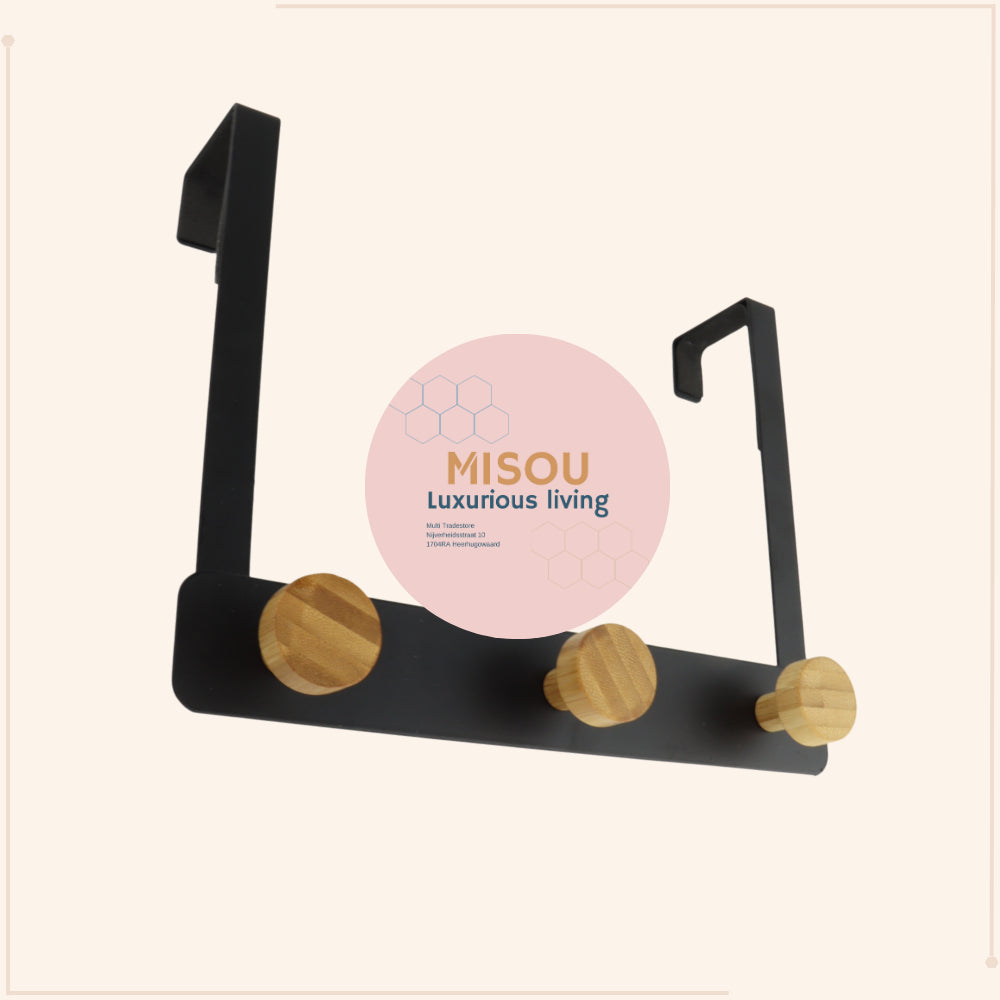 Deze kapstok van MISOU is eenvoudig te bevestigen aan een deur. De kapstok is geschikt voor een deur met een maximale dikte van 5 cm. De kapstok is gemaakt van metaal en beschikt over drie ophang plekken. De haken zijn gemaakt van bamboe. De breedte van de kapstok is 25 cm.