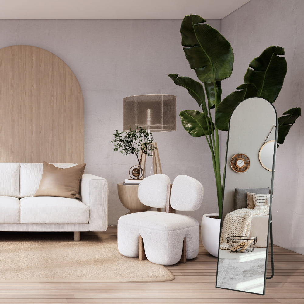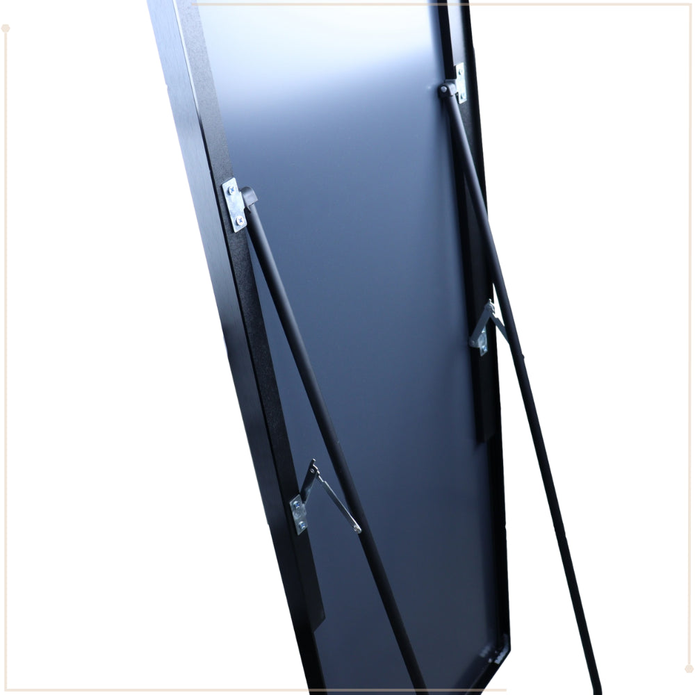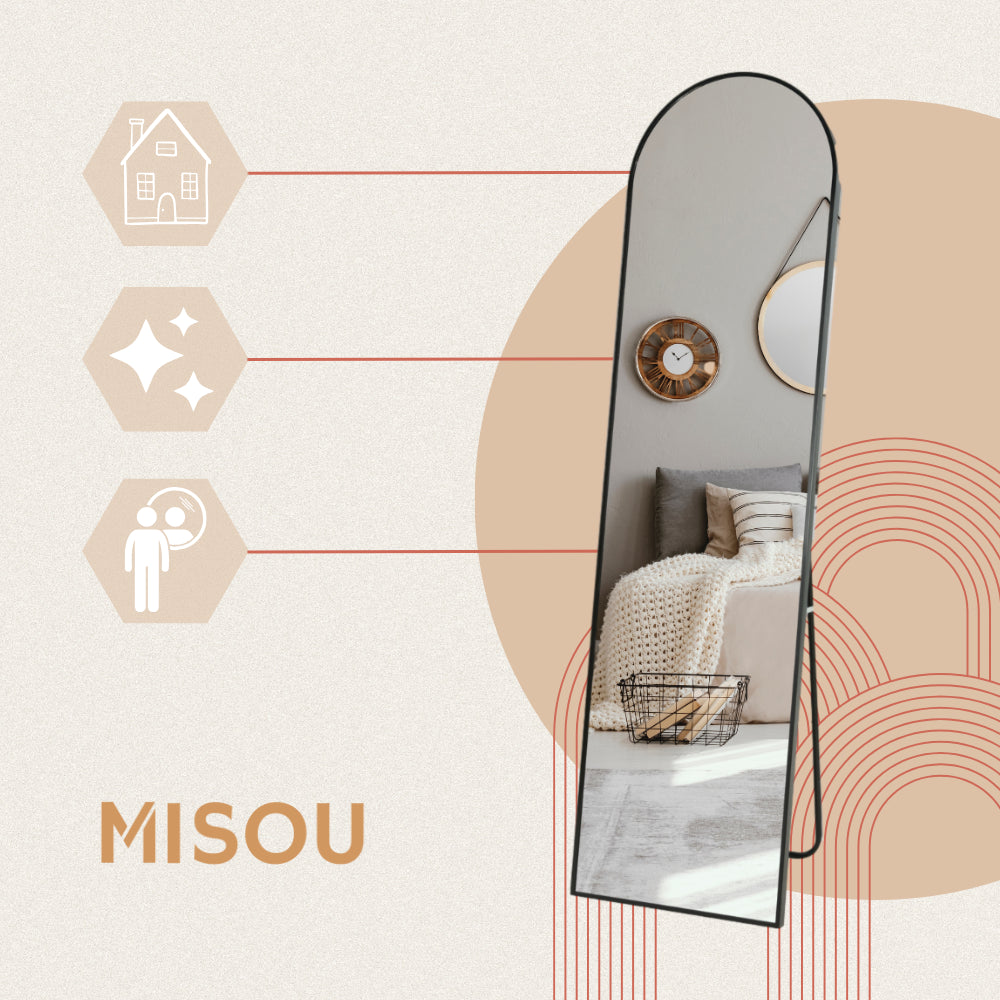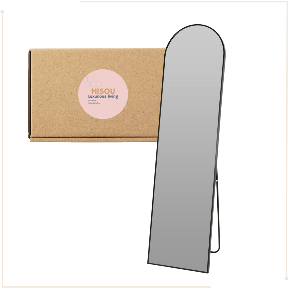 De MISOU Passpiegel NOLA Zwart is een elegante en functionele spiegel die perfect past in elk interieur. Met zijn lange 150 cm hoogte biedt deze staande spiegel niet alleen een volledig reflecterend oppervlak, maar ook een prachtige toevoeging aan je slaapkamer, gang of woonkamer. Het zwarte frame geeft de spiegel een luxueuze uitstraling, waardoor hij een verfijnde sfeer toevoegt aan de ruimte.