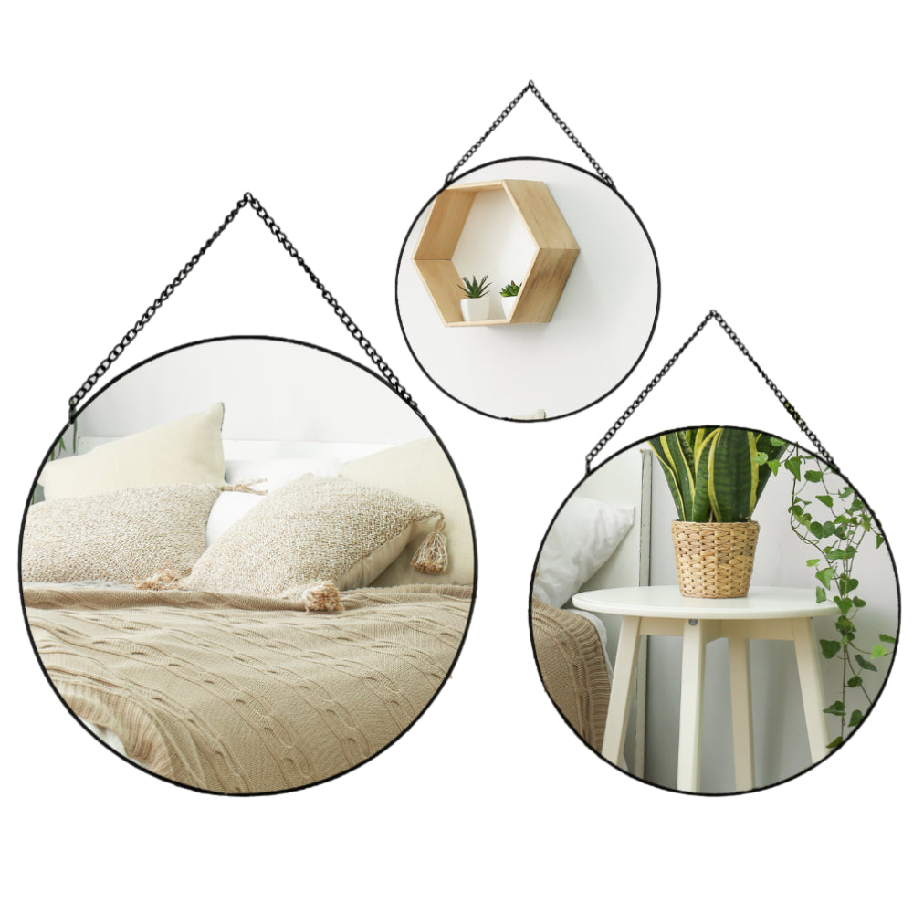 MISOU Spiegel Set van 3 Rond Zwart Metaal Wandspiegel Wanddecoratie...