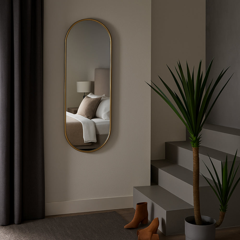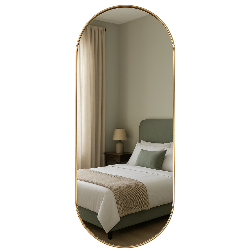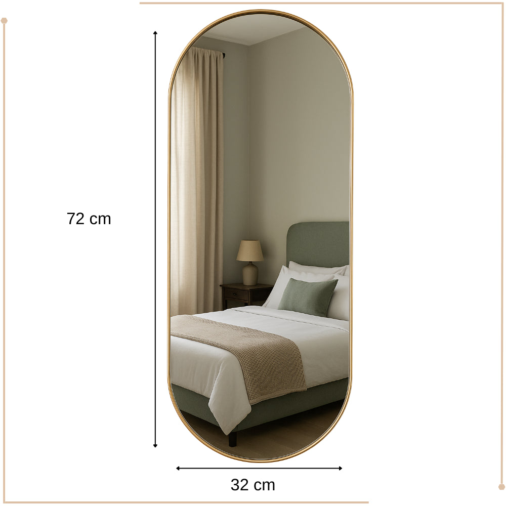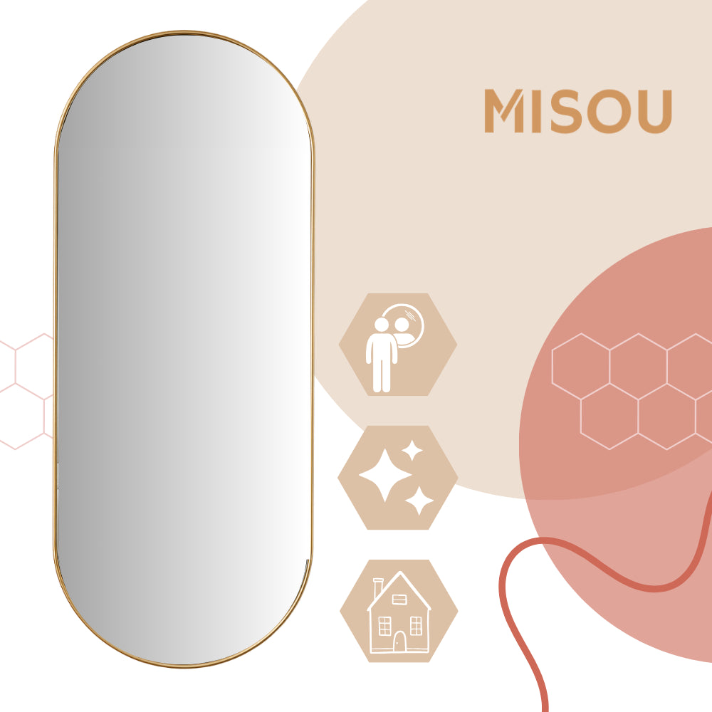 Voeg een vleugje elegantie en stijl toe aan je interieur met de MISOU Wandspiegel Goud. Deze ovale passpiegel is niet alleen praktisch, maar ook een ware statement piece in je woning. Het gouden frame geeft de spiegel een luxe uitstraling, die perfect past in zowel moderne als klassieke interieurs. Of je het nu in de badkamer, woonkamer of hal plaatst, deze spiegel zal je ruimte verfraaien en visueel vergoten.