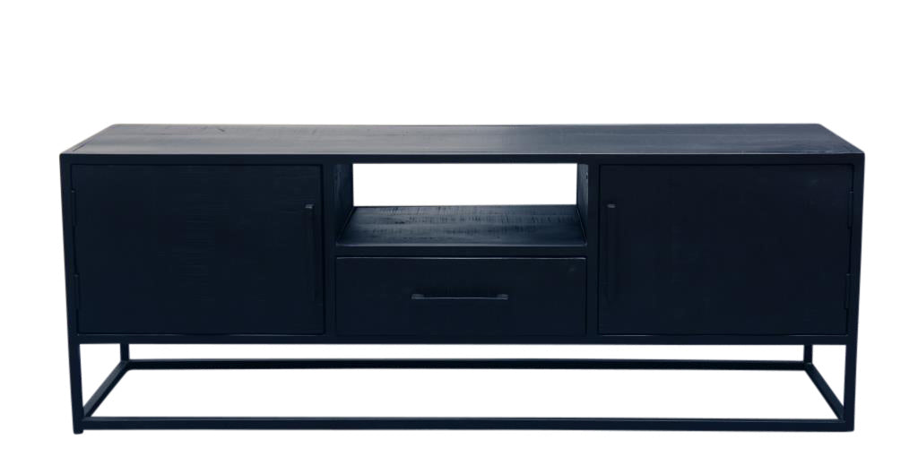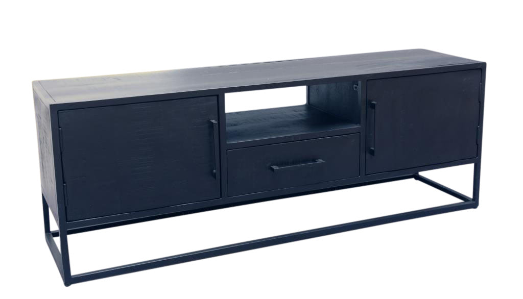 Kenia-TV kast-mangohout-zwart-met 2 deurtjes en lade-Mister Habitat