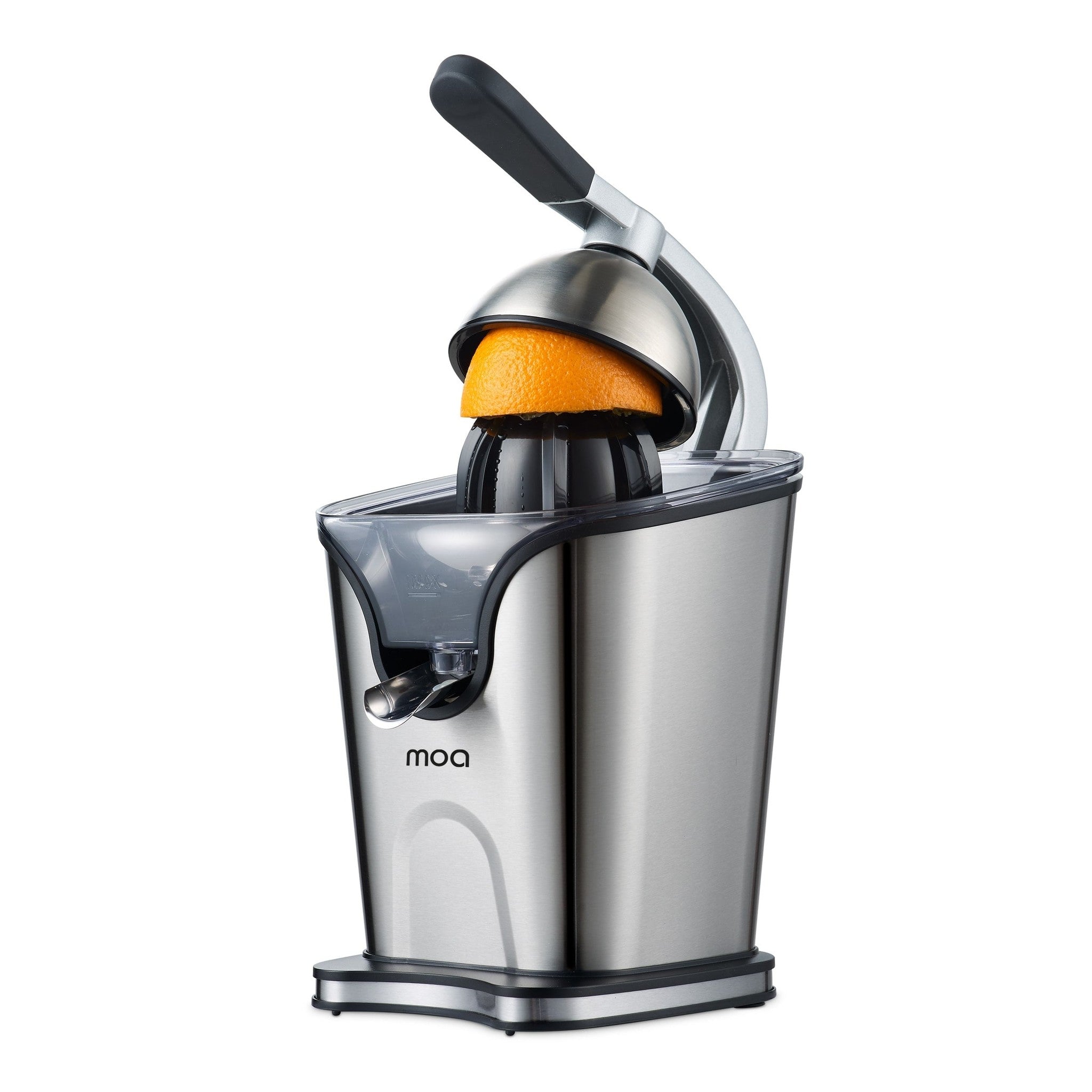Met de MOA citruspers CJ408 maak je in een handomdraai de lekkerste vruchtensappen, of dat nu voor tijdens het ontbijt, de lunch of op een andere moment van de dag is. Door de twee in maat verschillende opzetstukjes zijn veel soorten citrusvruchten te persen. De grote perskegel gebruik je voor het grotere fruit, bijvoorbeeld sinaasappels, grapefruits etc. De kleinere perskegel is ideaal om limoenen, citroenen en andere kleine citrusvruchten te persen. De werking is voor beide kegels hetzelfde. De pers is zowel handmatig als automatisch te gebruiken.