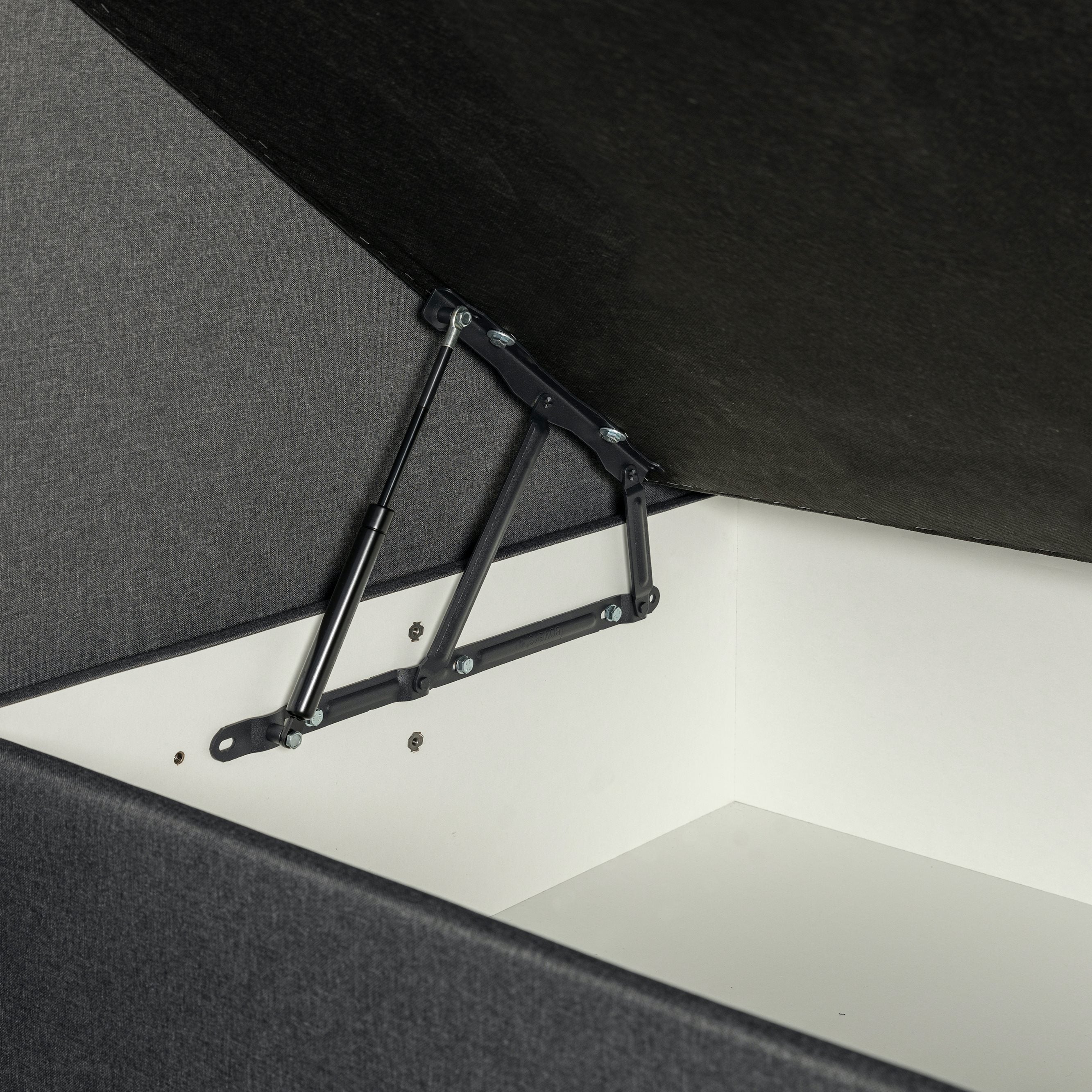 Topper De topper bij deze boxpspring met opbergruimte is gemaakt van HR45 koudschuim. Hij bestaat uit 4 cm stevig koudschuim en heeft een totale hoogte van 6 cm. De matrastopper bedekt de gehele boxspring. De topper zorgt voor een fantastisch ligcomfort! Door de open cel structuur ademt deze geweldig en is hij uiterst warmte- en vochtregulerend.