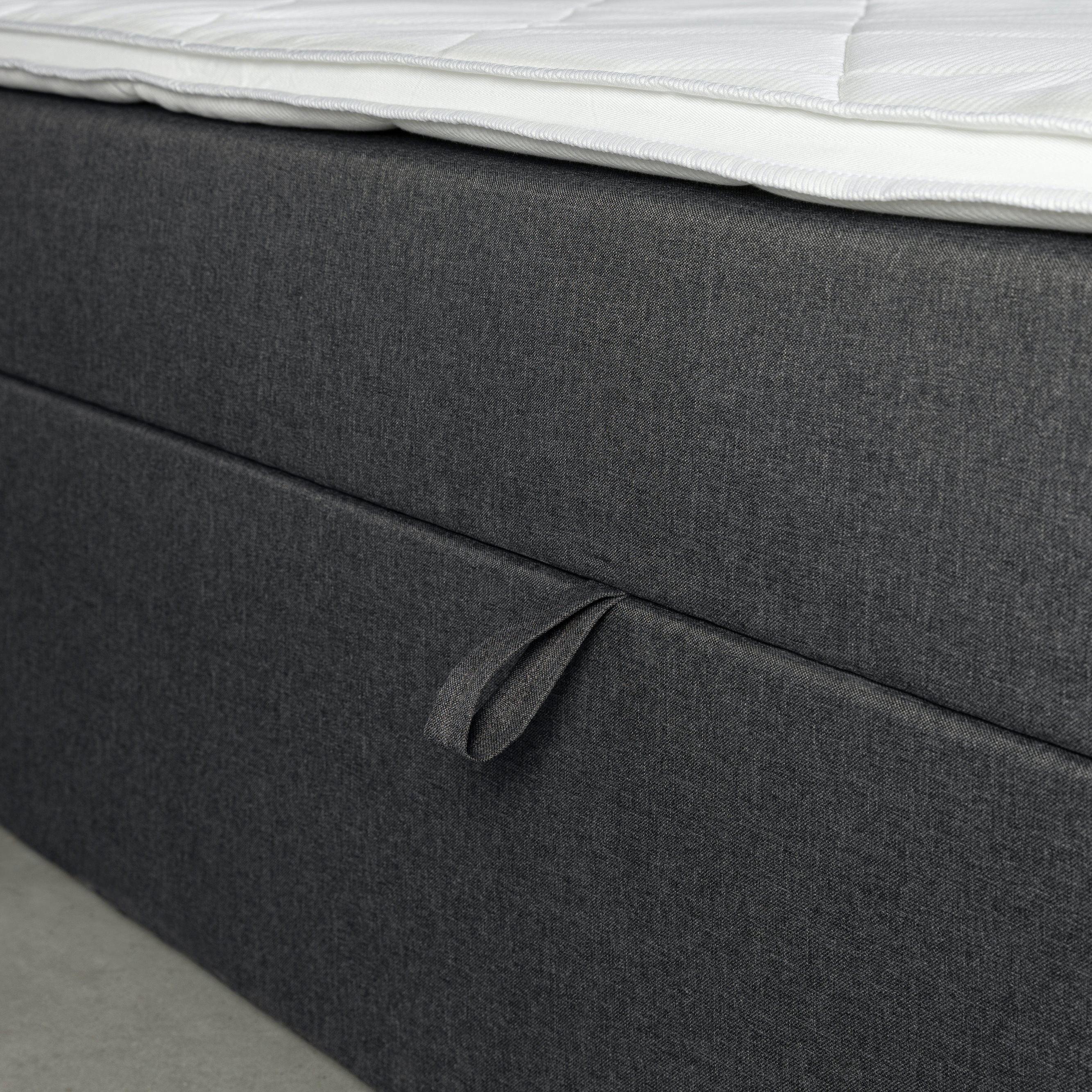 Unieke veertechniek De losse boxen en de opbergruimte deze boxspring wordt geleverd met 2 vlakke comfort boxen van ca. 30 cm hoog. En wat deze boxen zo bijzonder maakt, is de royale opbergruimte onder de matrassen. Normaal is dit een loze ruimte, maar deze boxspring is multifunctioneel! Het openen van de opbergruimte gaat erg makkelijk; door aan de stevige lus te trekken gaan de pocketveer matrassen zijwaarts omhoog, alsof hij zijn vleugels uitslaat. Door een unieke veertechniek blijft de boxspring goed openstaan. Het mechanisme is goed bestendig tegen intensief gebruik en zo heb jij letterlijk in een handomdraai een royale opbergruimte waar je van alles in kwijt kunt. Denk bijvoorbeeld aan je beddengoed, kleding en schoenen.