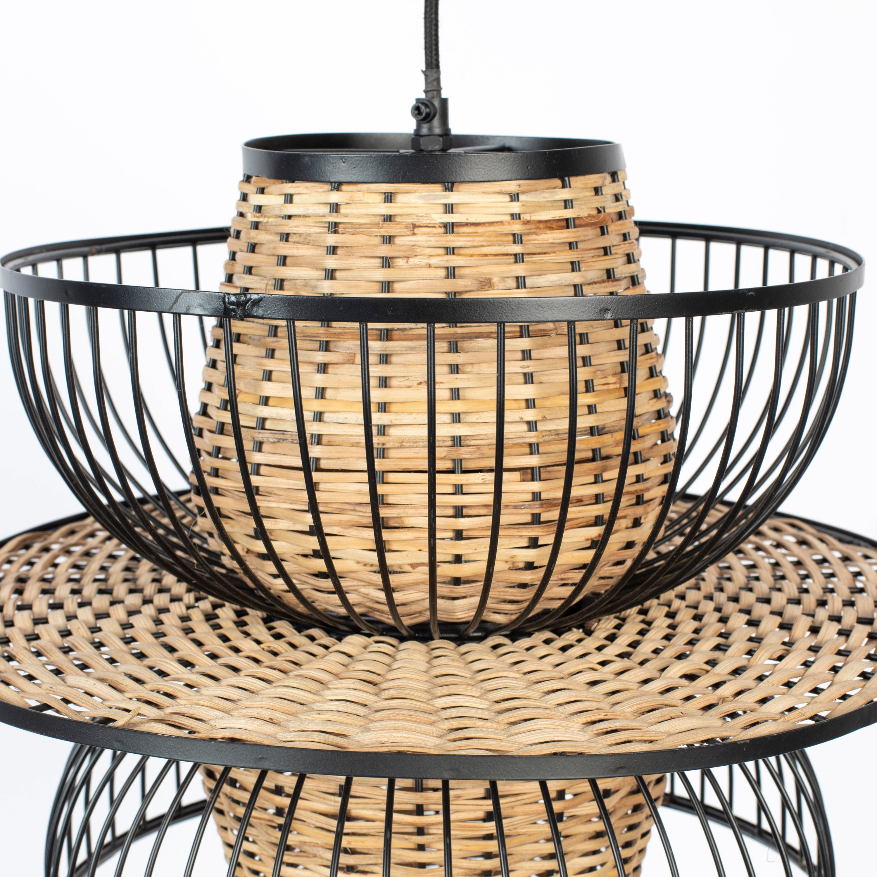 - De kap is van gevlochten riet op een frame van gepoedercoat staal