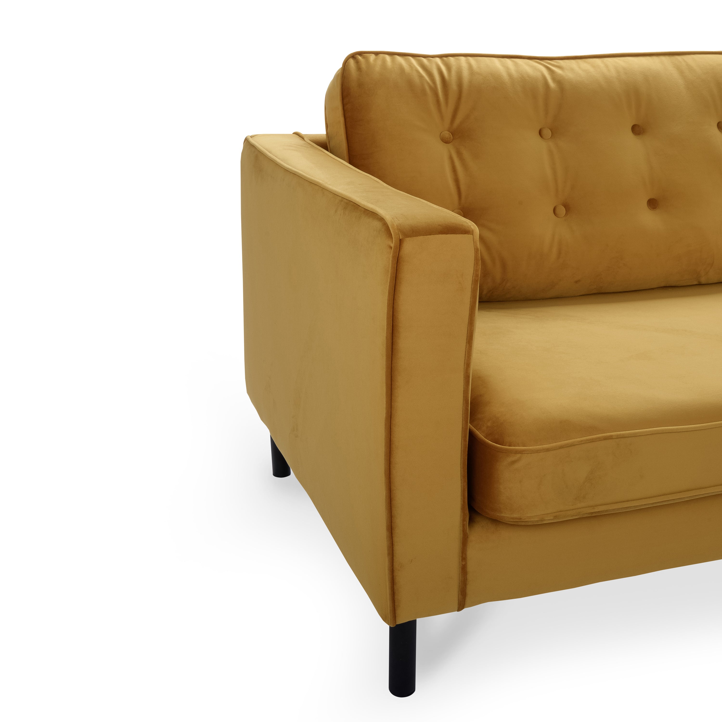 - De gecapitonneerde fluwelen zitting geeft deze bank een luxe uitstraling