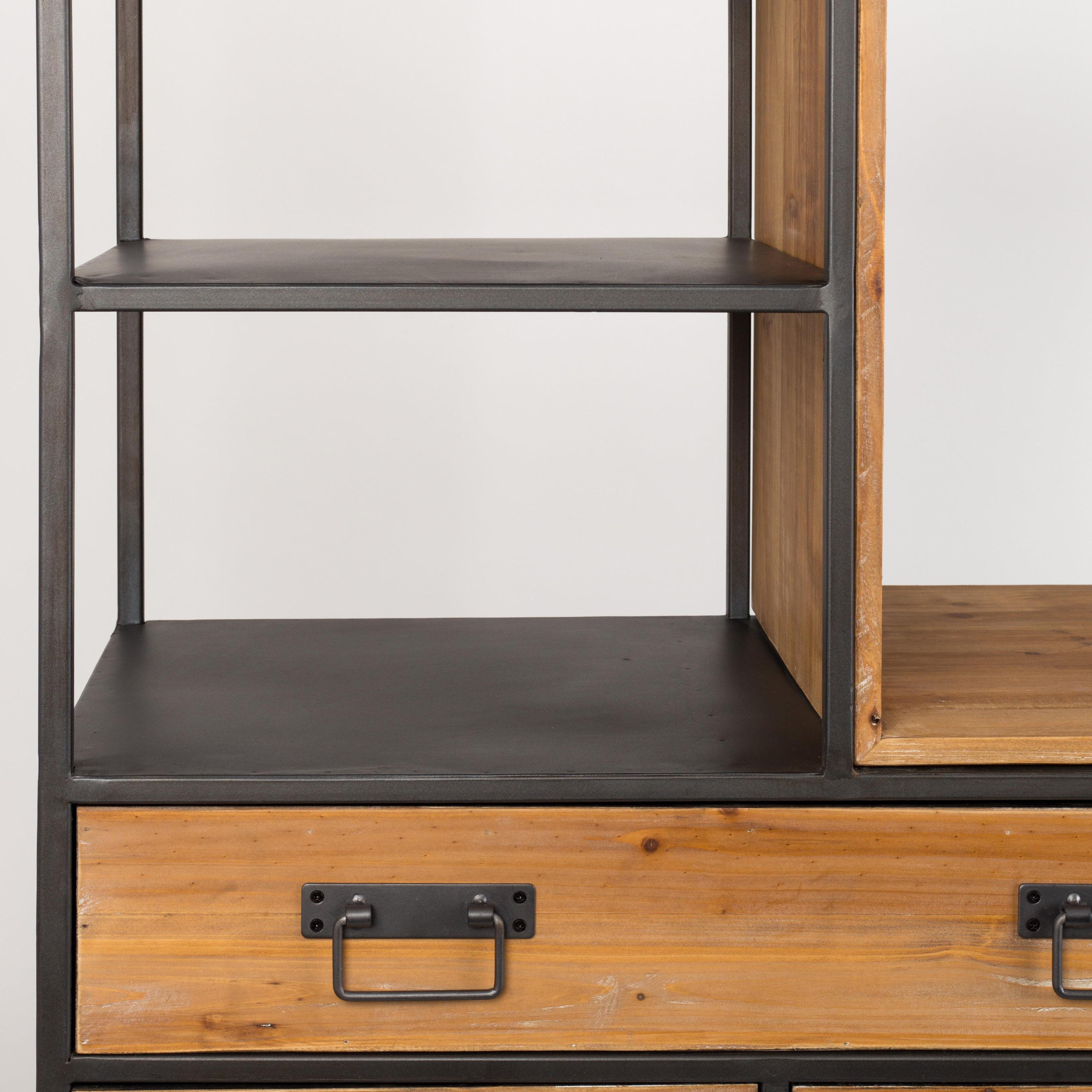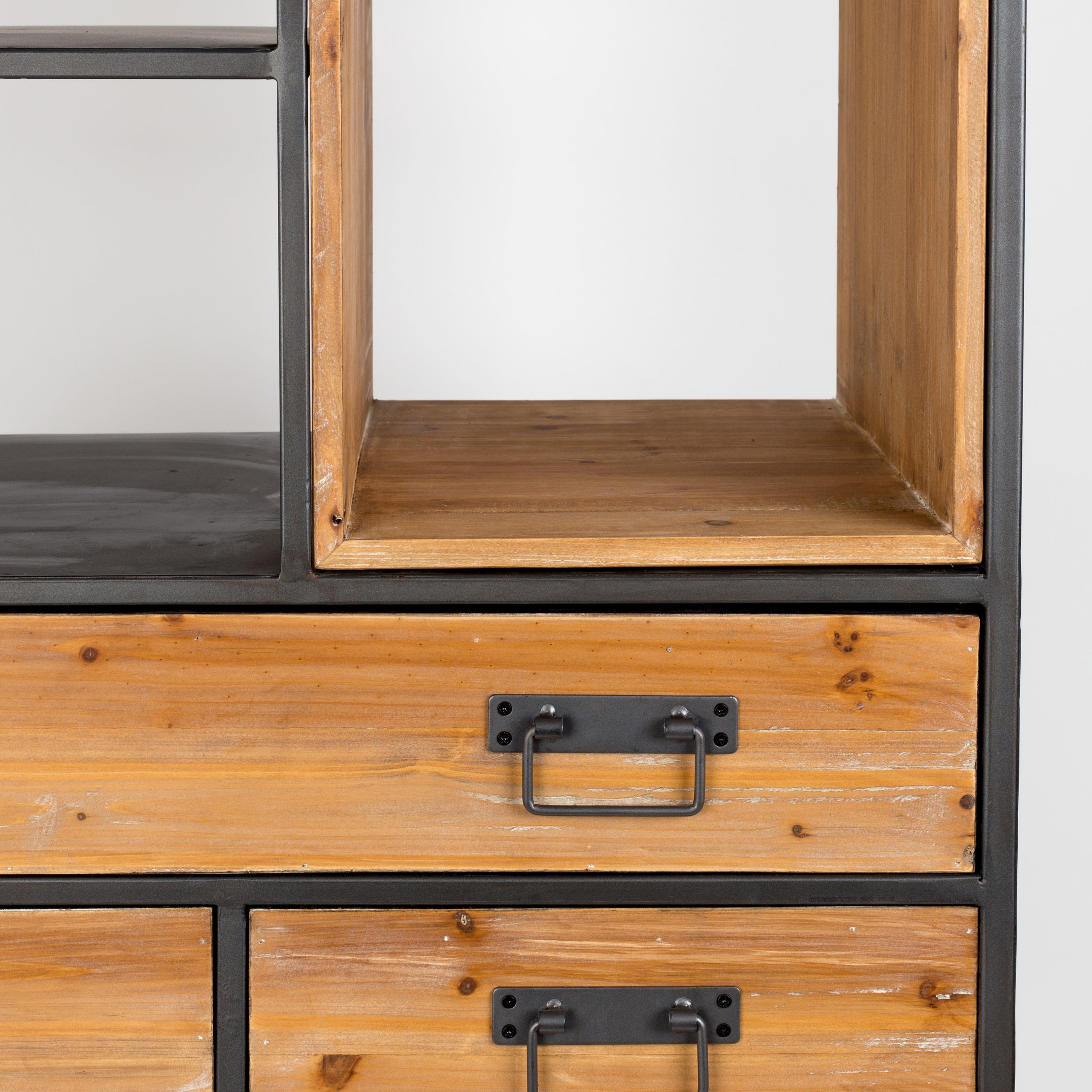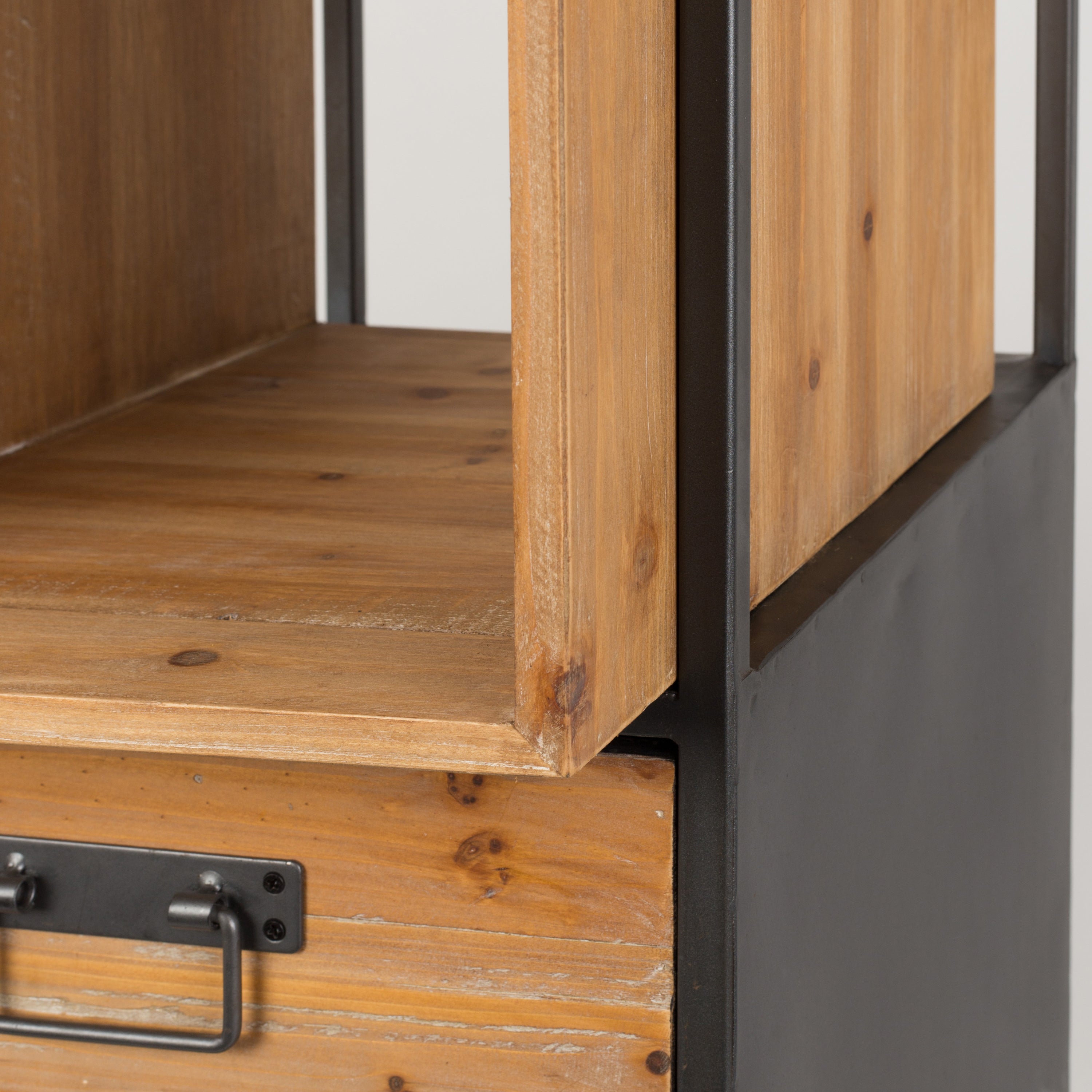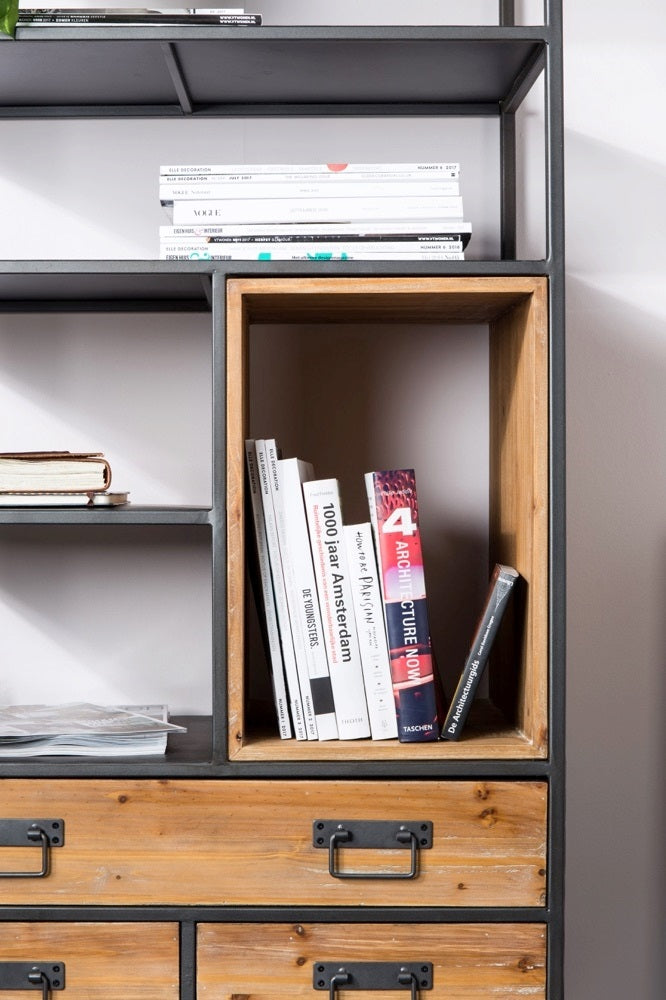 Stoer design De combinatie van vurenhout en gepoedercoat ijzer maakt dit een heel stoere kast. En kijk eens naar de ijzeren handgrepen! Perfect voor een stoer interieur dus, al is het maar net met welke accessoires je de kast combineert. Waar zet jij hem neer?