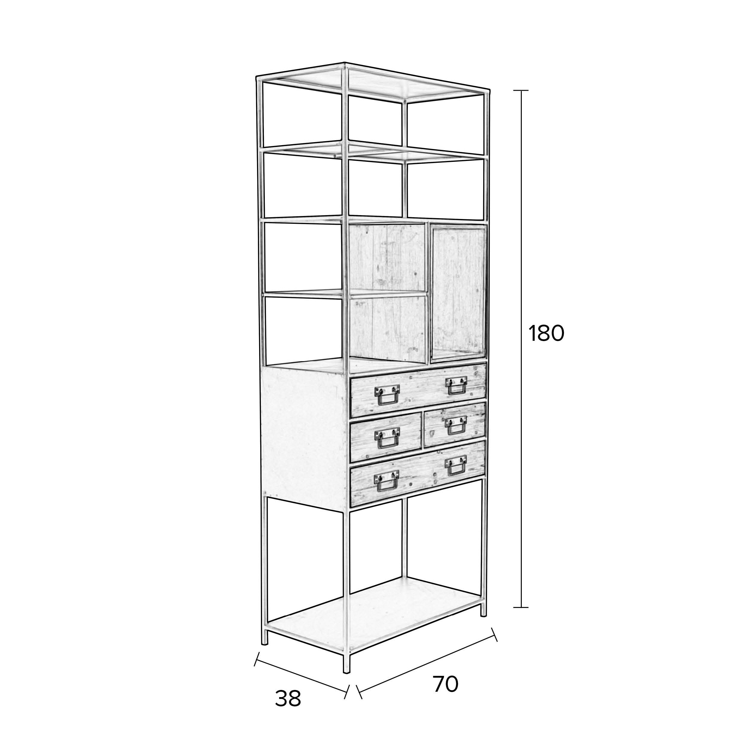 - Stoere kast van H 180 x B 70 x D 38 cm