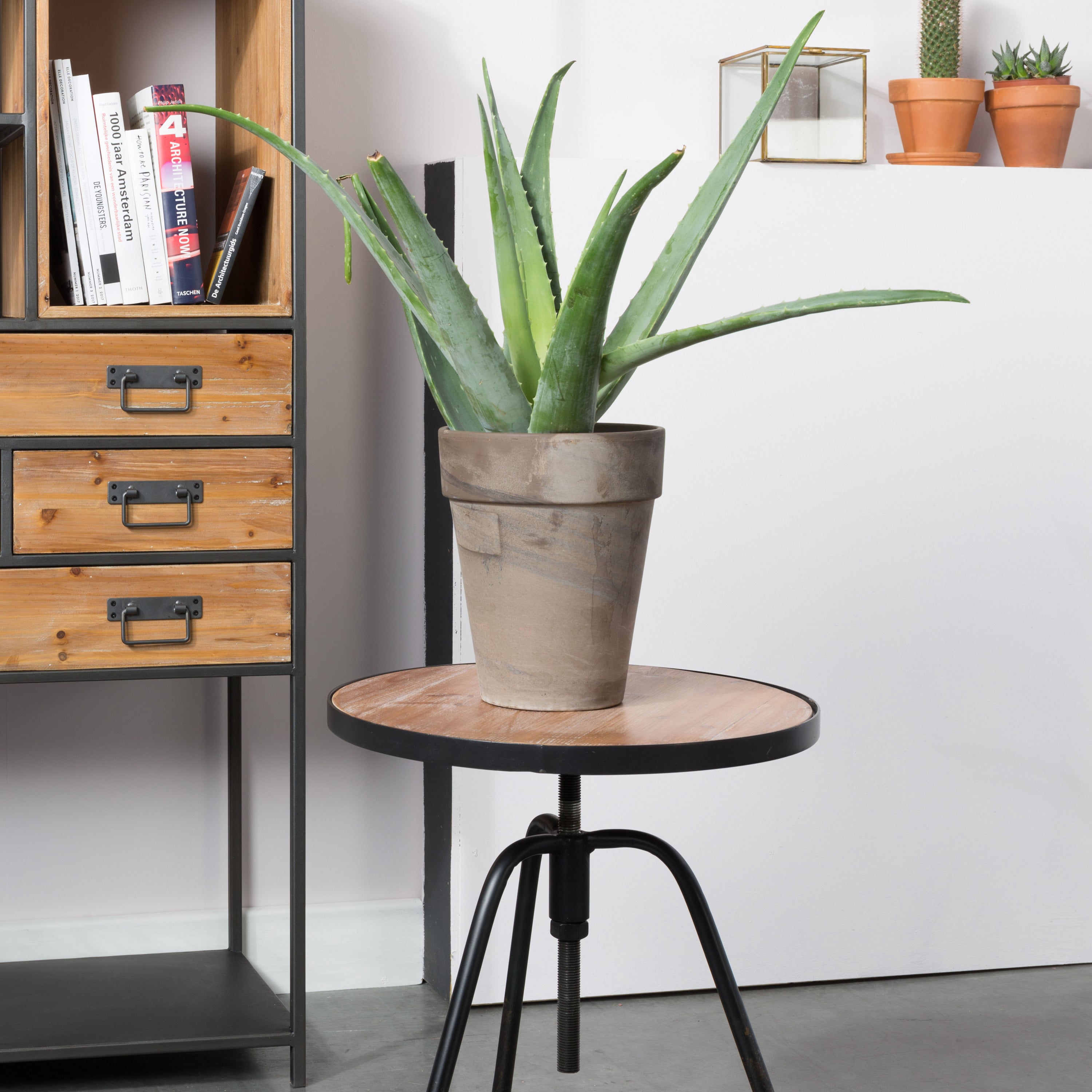 - Het grote houten vak is leuk voor een groene plant!