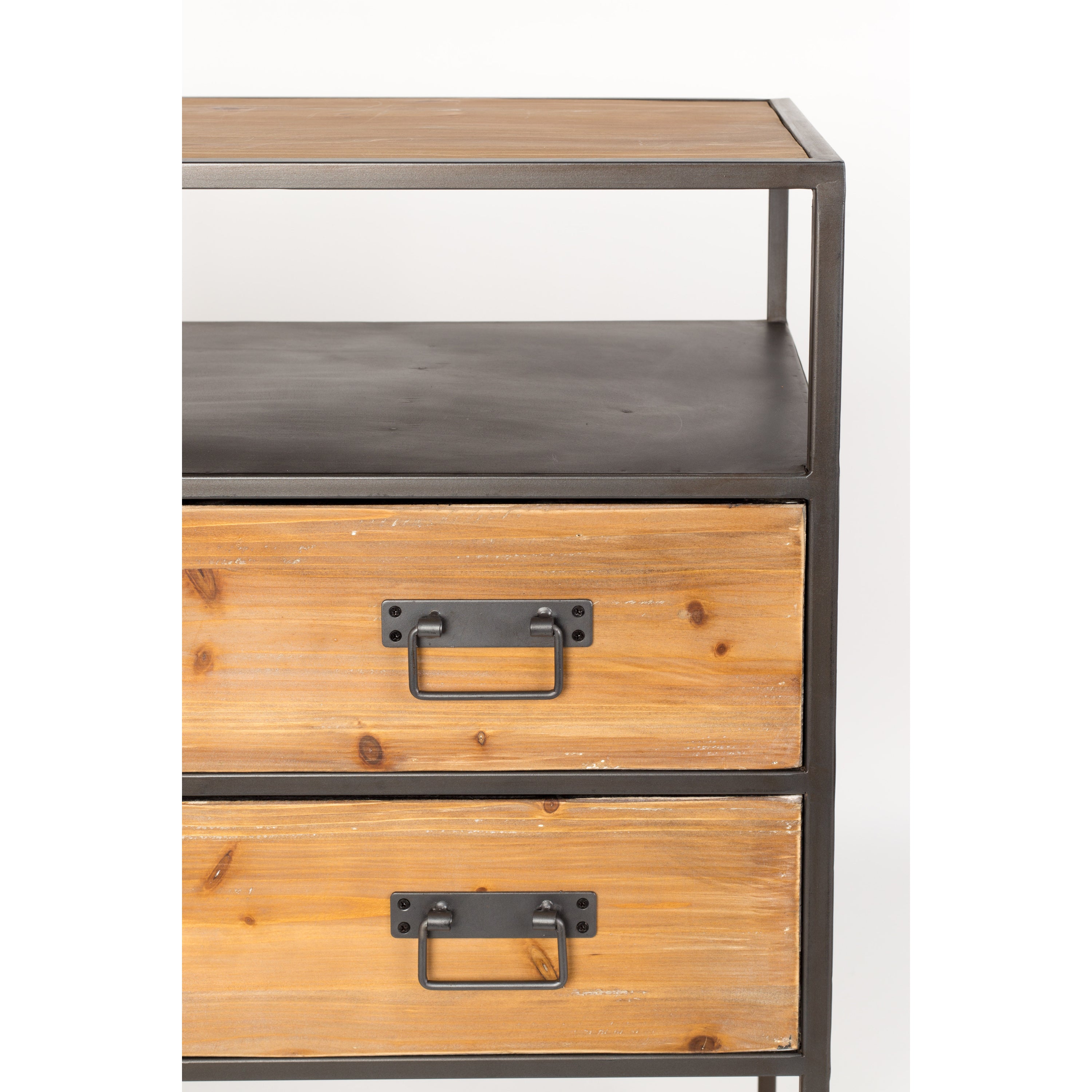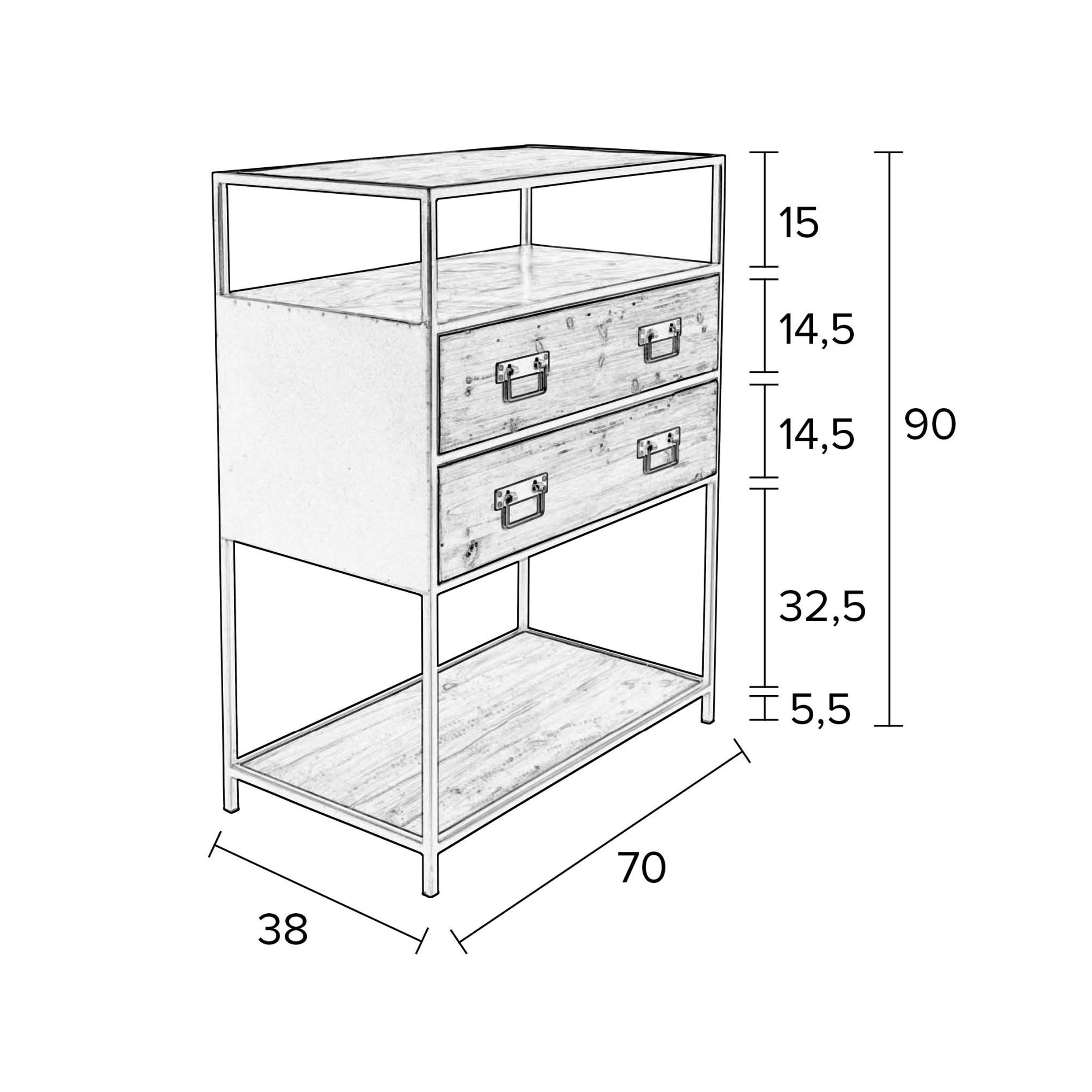 Stoer design De combinatie van vurenhout en gepoedercoat ijzer maakt dit een heel stoere kast. En kijk eens naar de ijzeren handgrepen! Perfect voor een stoer interieur dus, al is het maar net met welke accessoires je de kast combineert. Waar zet jij hem neer?