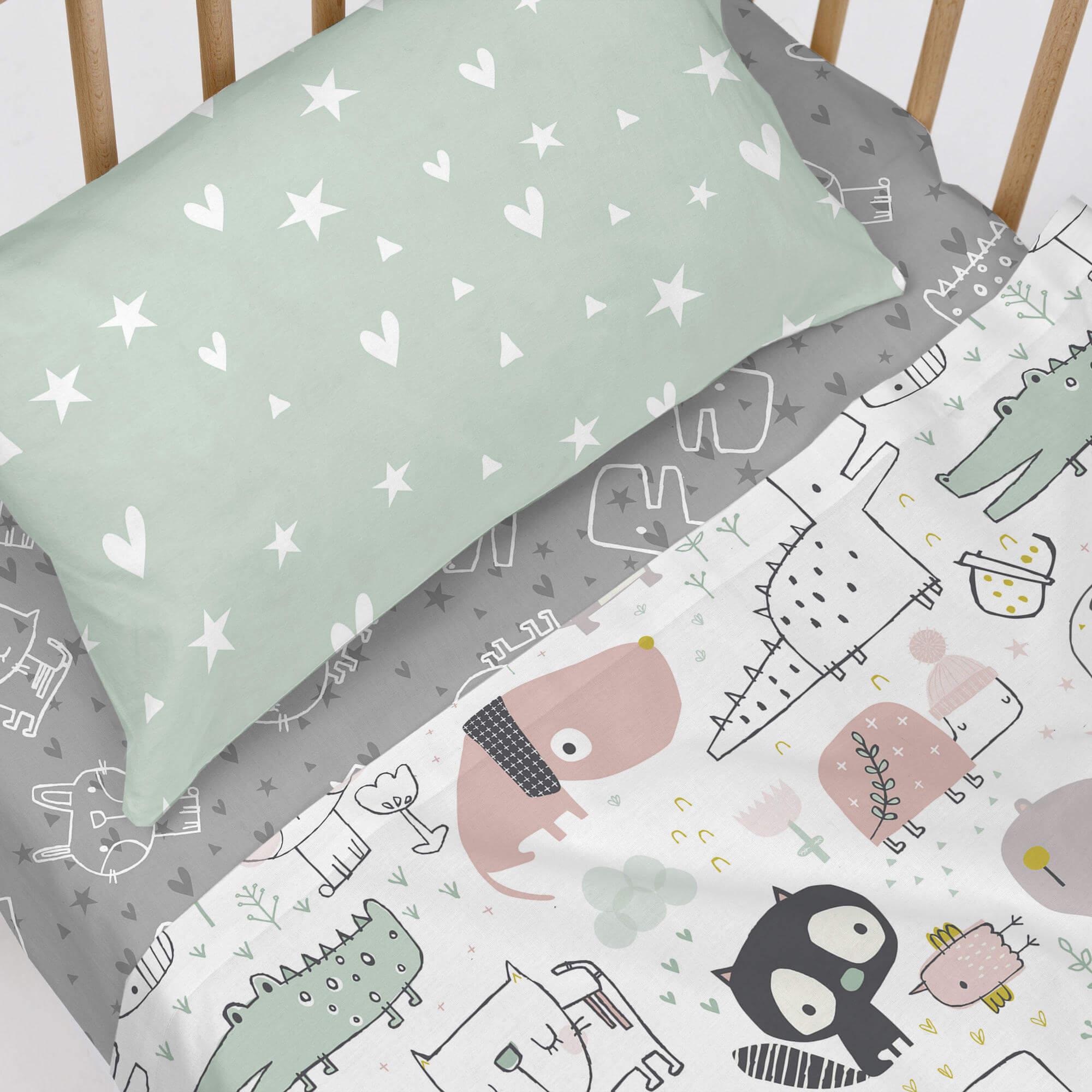 Als de avond valt, is het tijd om het licht uit te doen, naar de hemel te kijken voor hartjes en sterren, en dan in slaap te vallen op het Best Buddies hoeslaken uit de Moshi Moshi collectie. Gemaakt in Spanje, met 100% katoen en 150 thread count voor een zachte en comfortabele touch. Handig en gemakkelijk te verstellen dankzij de elastische hoeken.