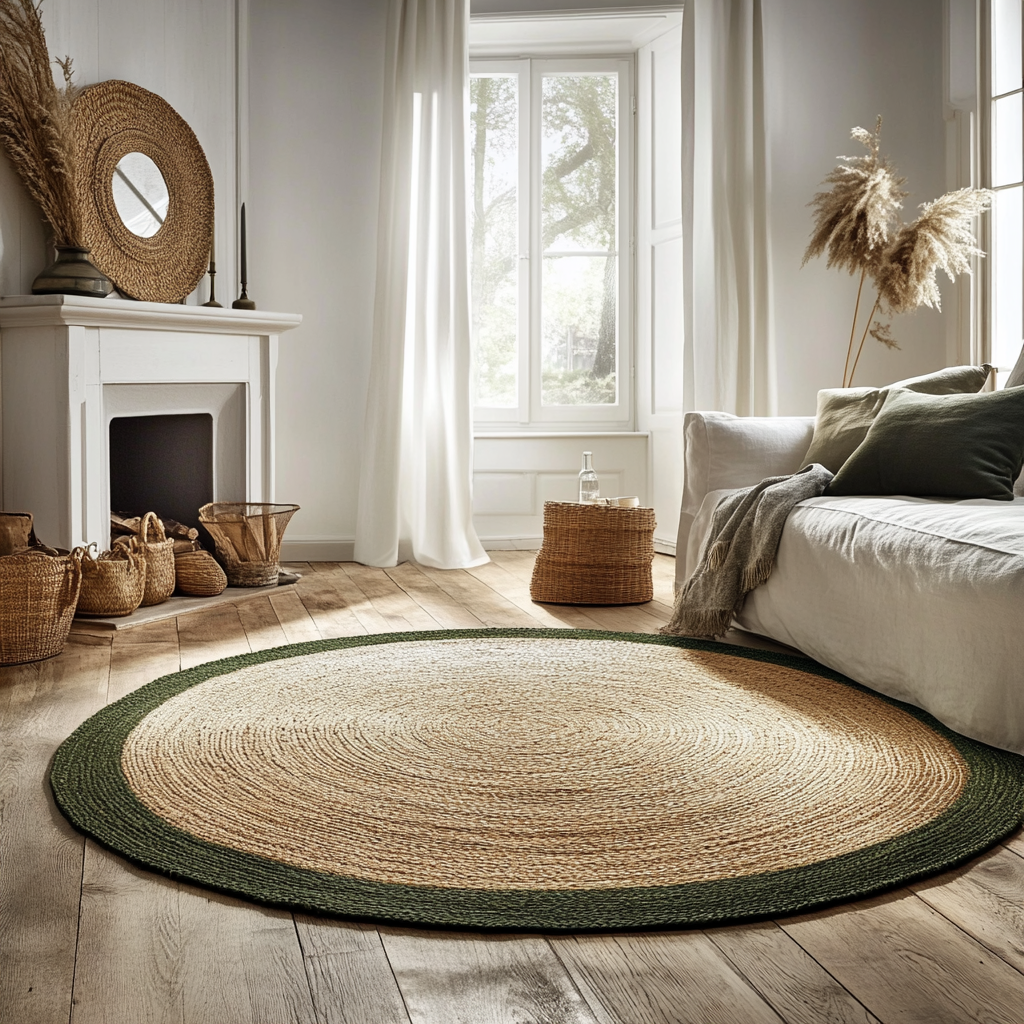 Mrcarpet Rond jute vloerkleed naturel|Groen met rand 120cm