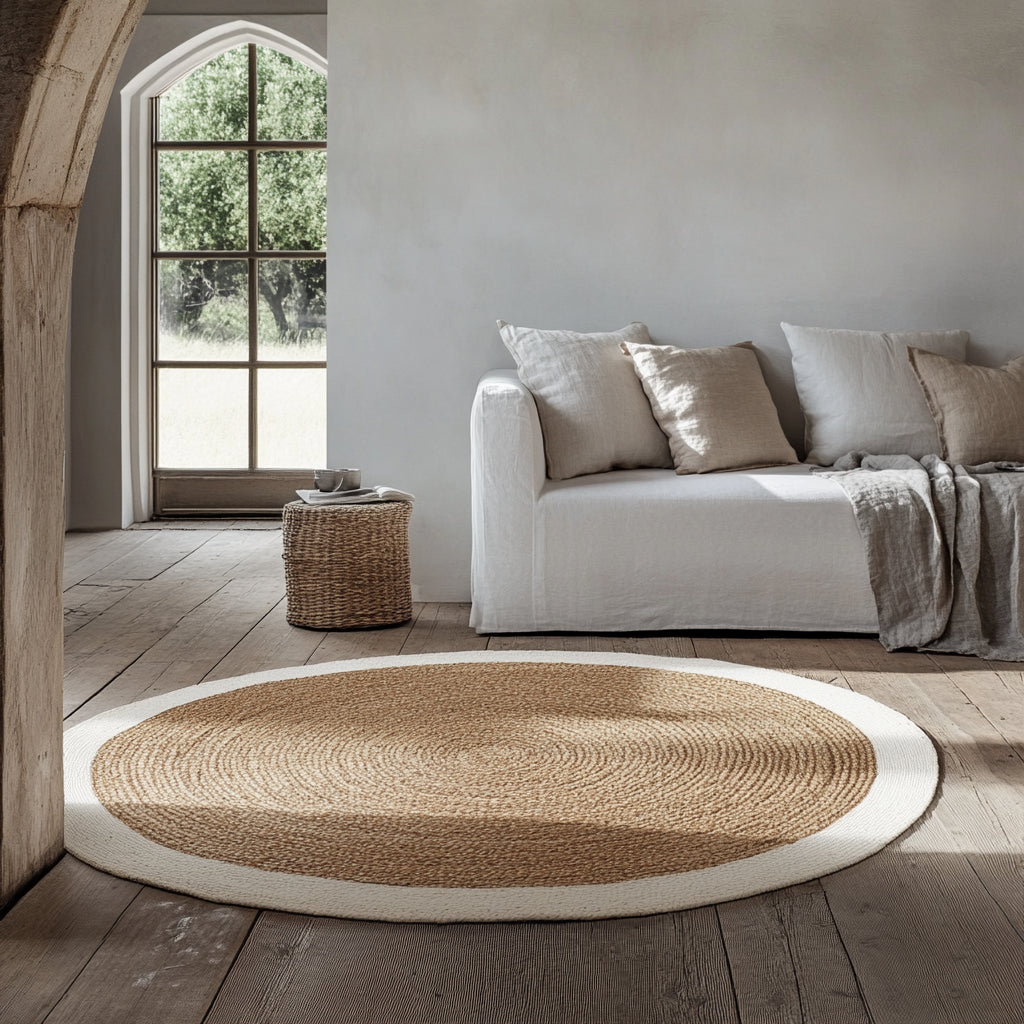 Mrcarpet Rond jute vloerkleed naturel|wit met rand 200cm (meest gekozen)